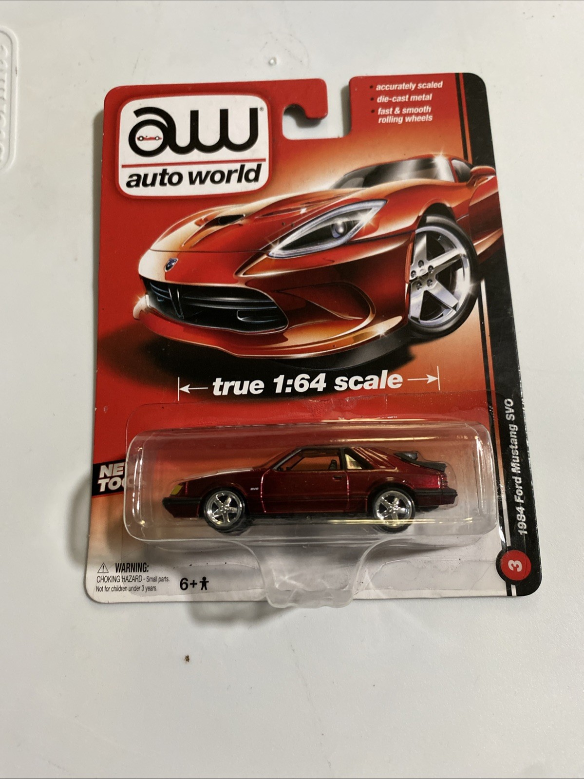 как выглядит Auto World True 1:64 Scale 1984 Ford Mustang SVO Ultra Red Chase 2013 Release фото