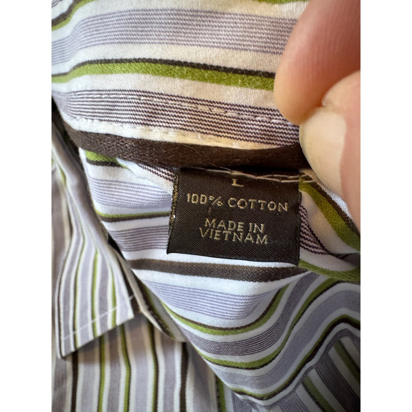 как выглядит Tasso Elba Mens L Striped Long Sleeve Button Down Shirt Cotton Casual фото