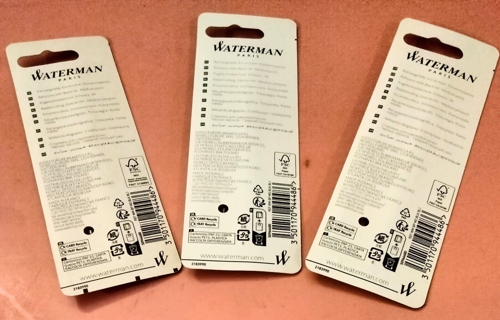 как выглядит 3 THREE WATERMAN BLACK MEDIUM BALL POINT REFILLS SEALED PACKS BUY 7.77 GODLY фото