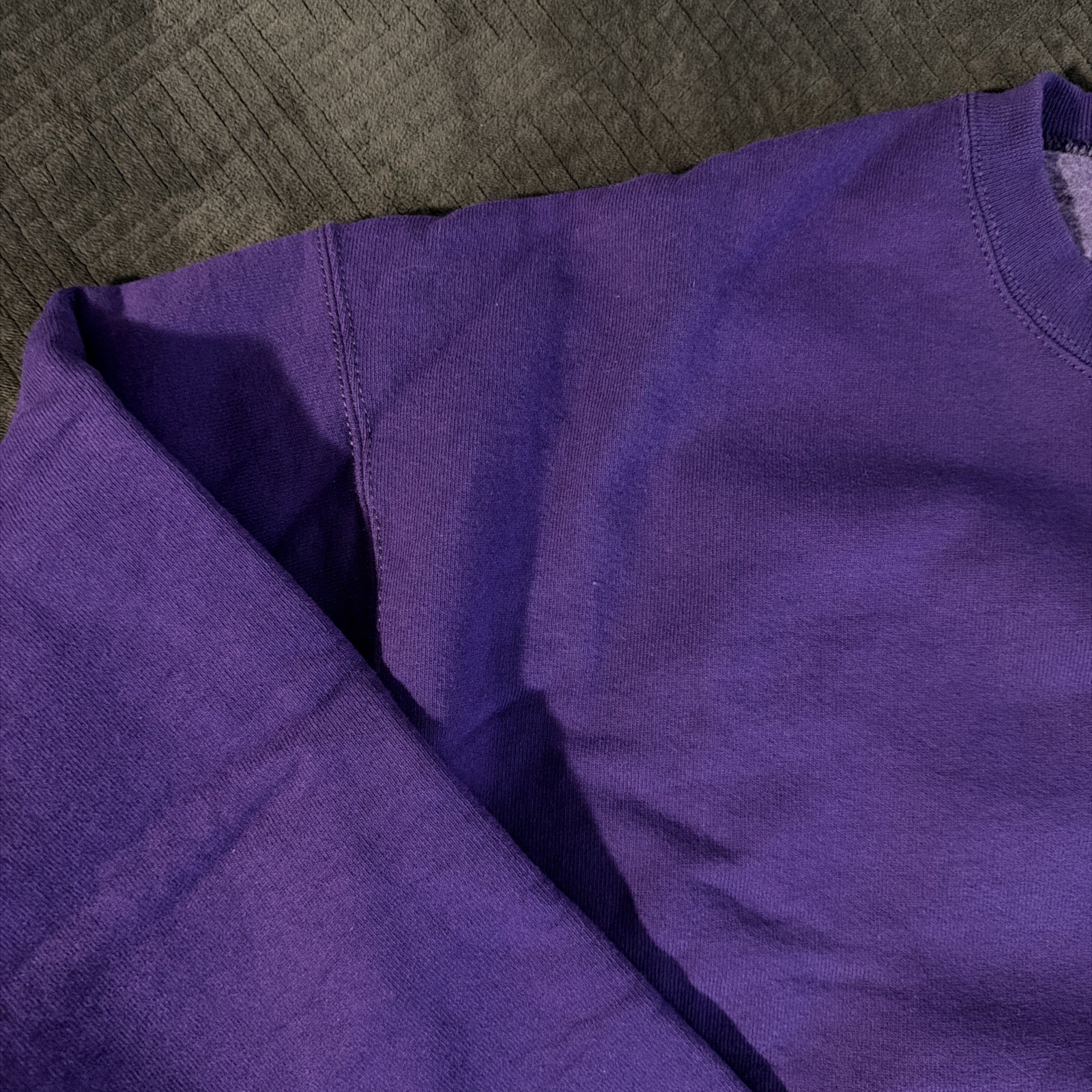 как выглядит Vintage 90s Fruit Of The Loom Purple Blank Sweatshirt Raglan XL USA Made фото