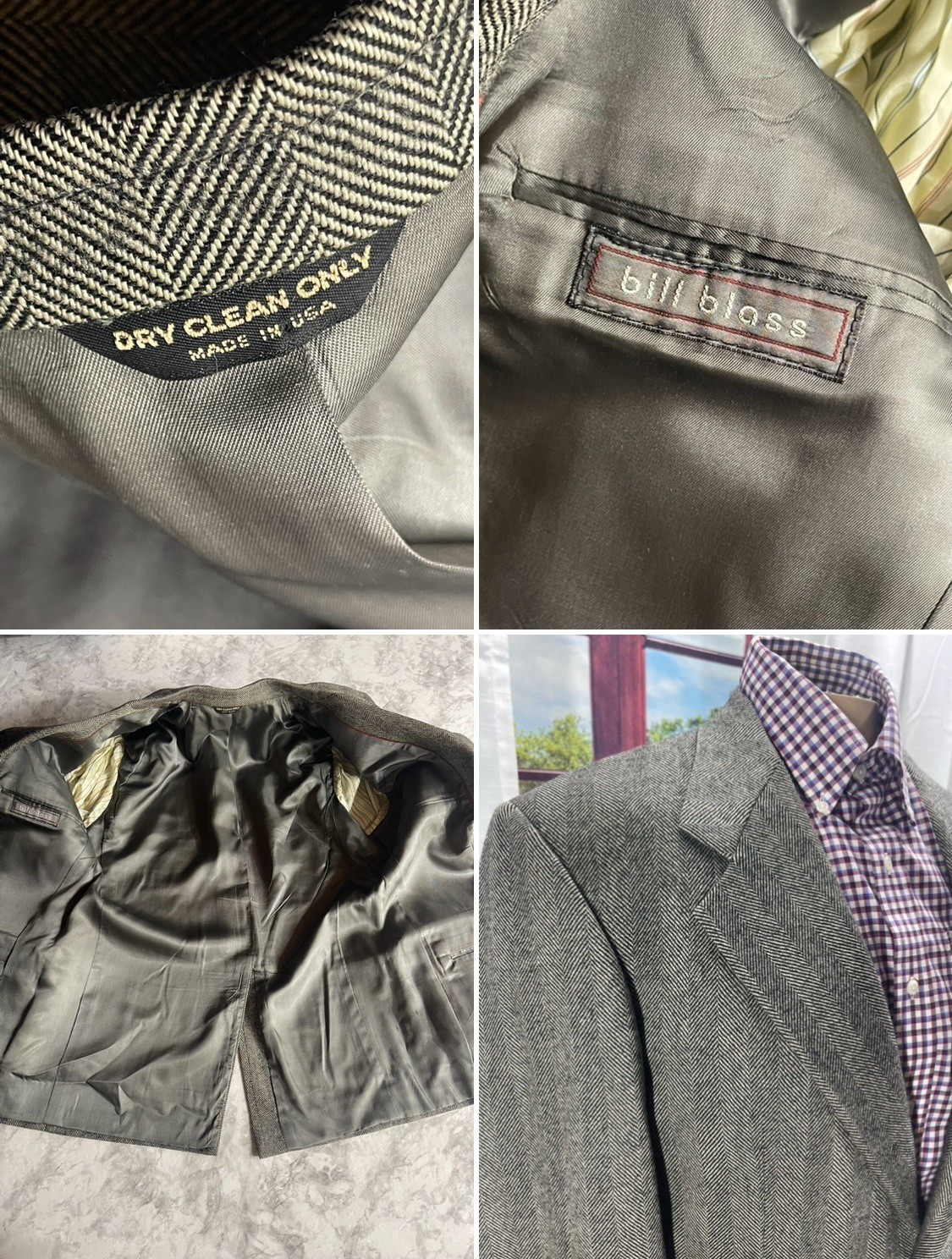как выглядит Bill Blass Herringbone Wool Sport Coat Blazer Gray Two-Button Sz 42R USA фото