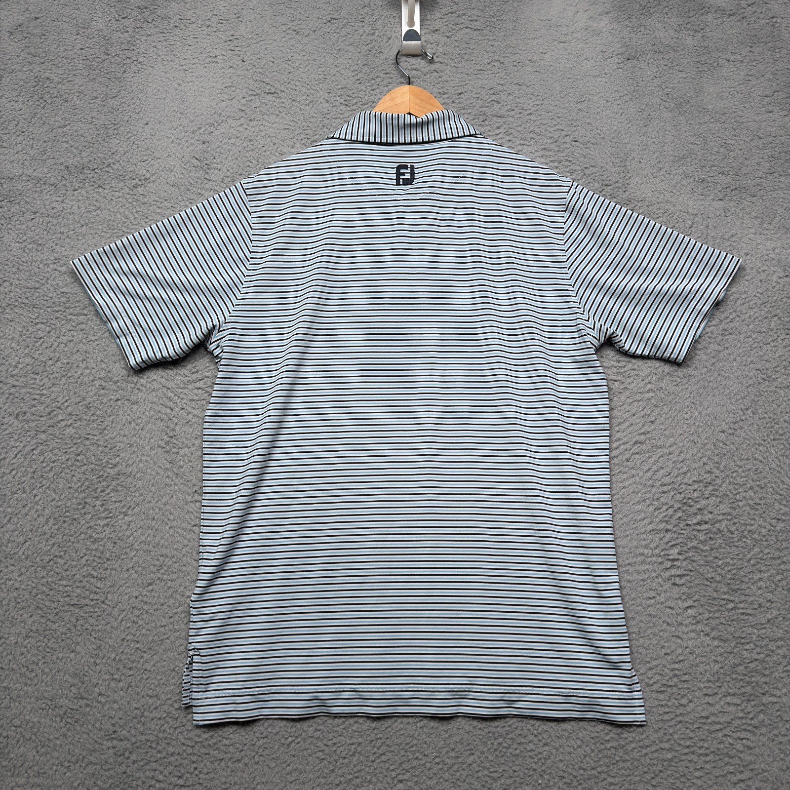 как выглядит Footjoy Polo Shirt Mens Large Blue Striped Performance Stretch Short Sleeve Golf фото