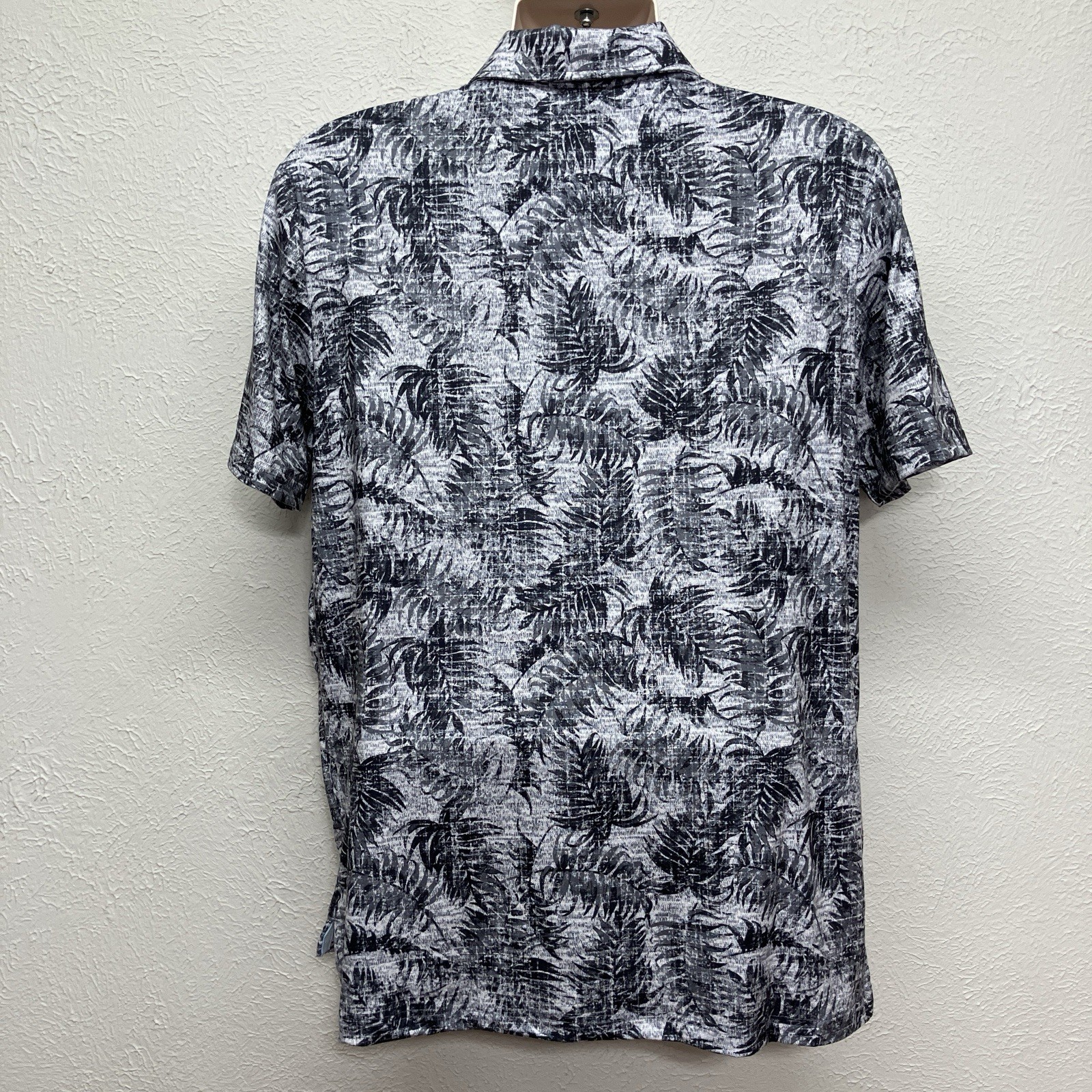 Chaps Performance Polo Shirt Mens M Black Gray Leaf Short Sleeve Classic Stretch