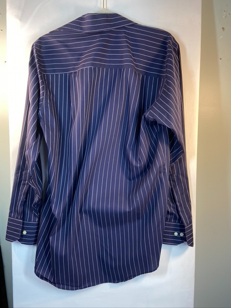 как выглядит DONALD TRUMP MENS 14.5 NON IRON BLUE WHITE STRIPE DRESS SHIRT 32/33 BUTTON DOWN фото