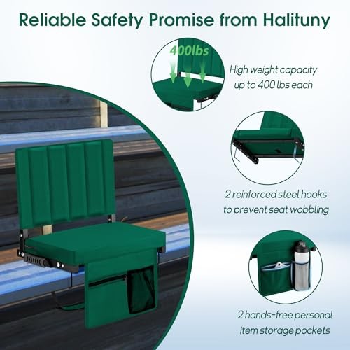 Stadium Seat for Bleachers with Back Support, Portable Bleacher Seat 1 Green