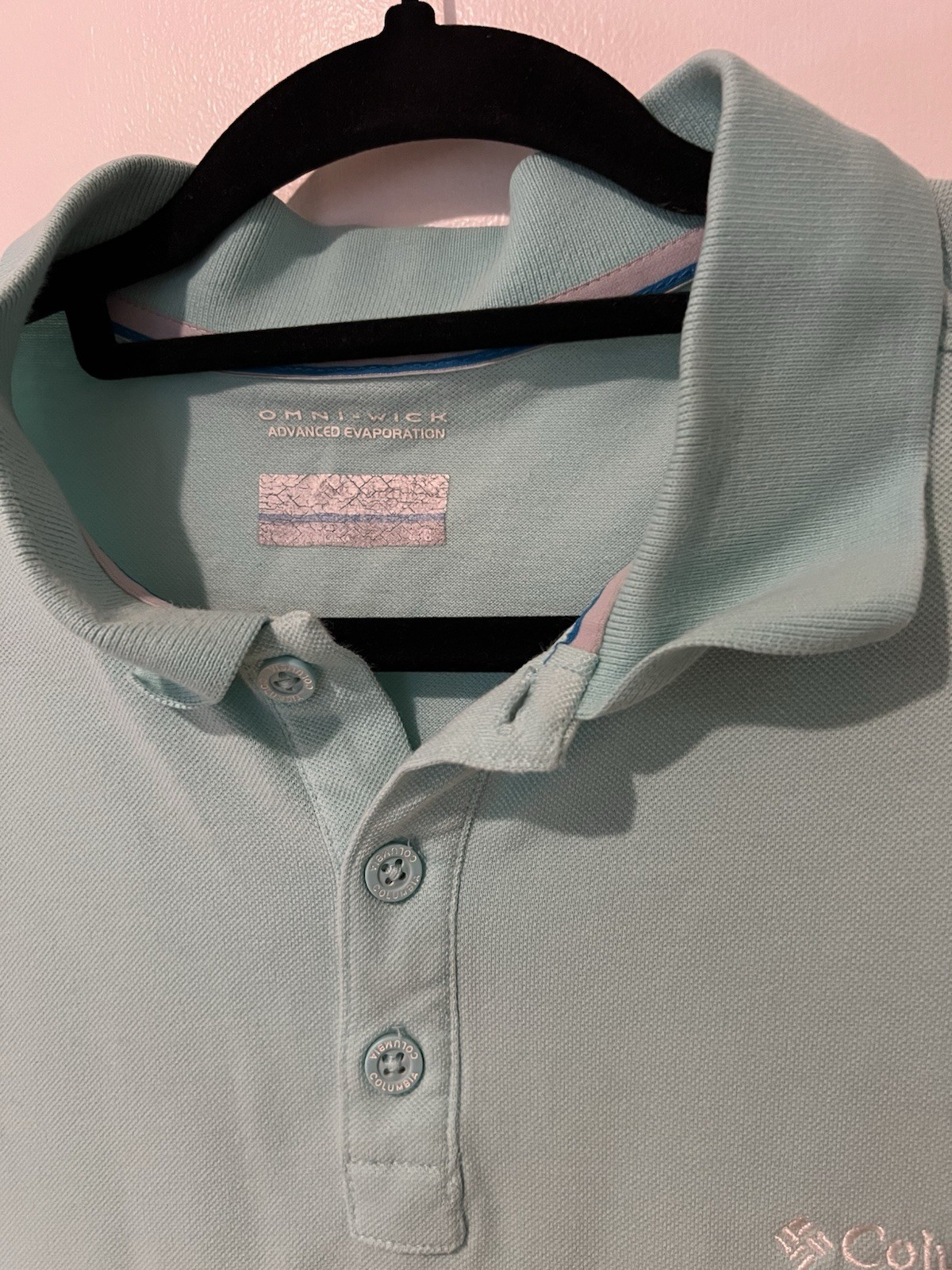 как выглядит Columbia Omni Wick Polo Shirt Men s Light Aqua Mint Short Sleeve Large фото