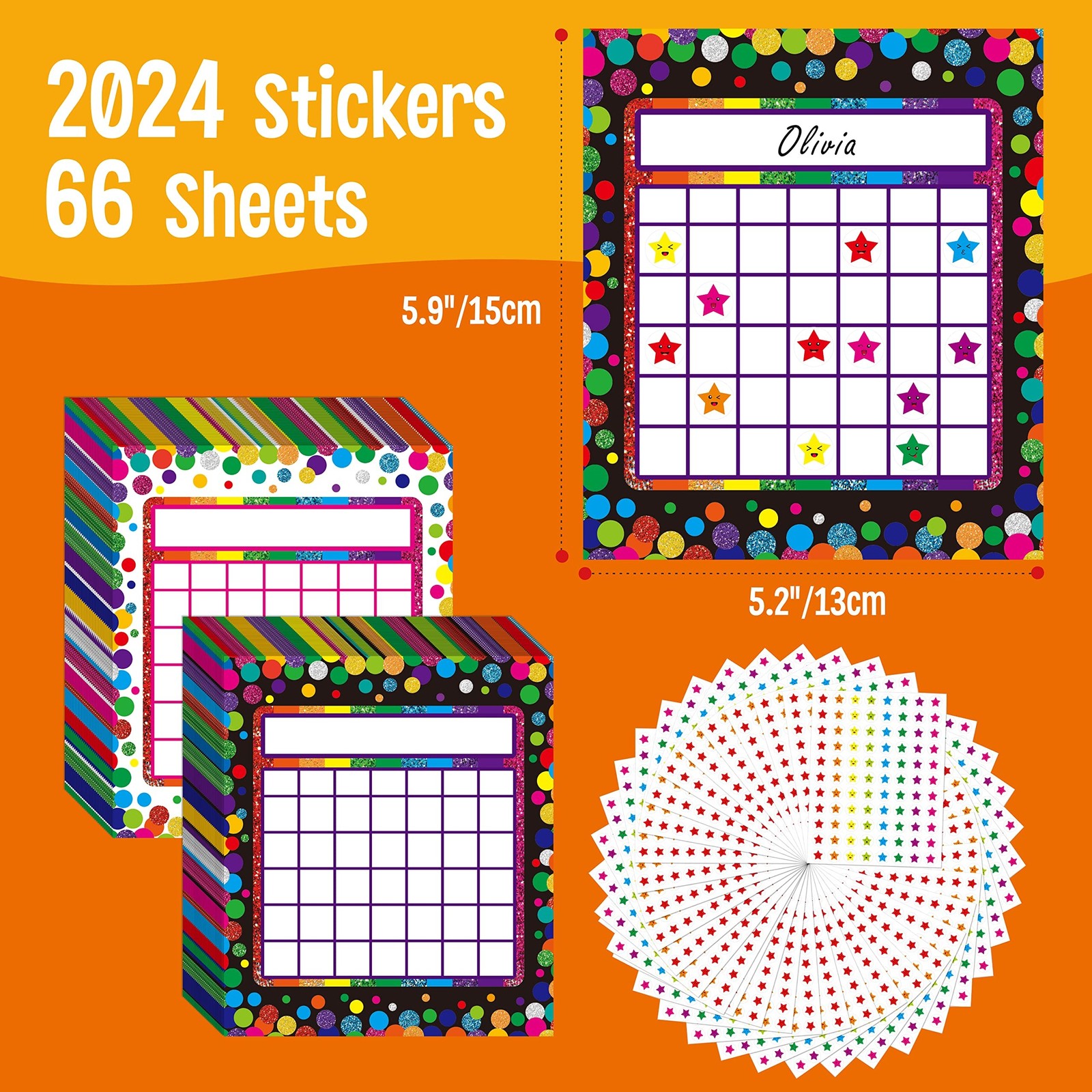 66 Pack Classroom Incentive Chart, 2 Confetti Designs with 2024 Star Stickers...