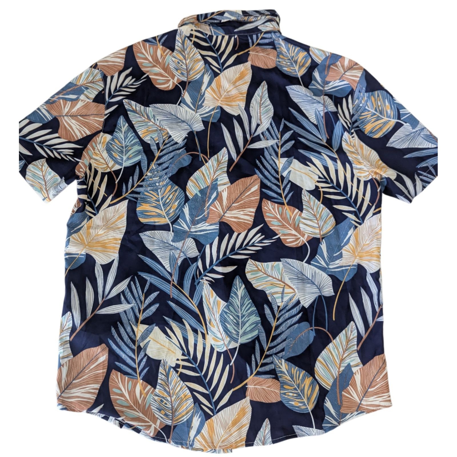 Mens Tropical Hawaiian Shirt Large Leaf Print Beach Vacation Button Up L