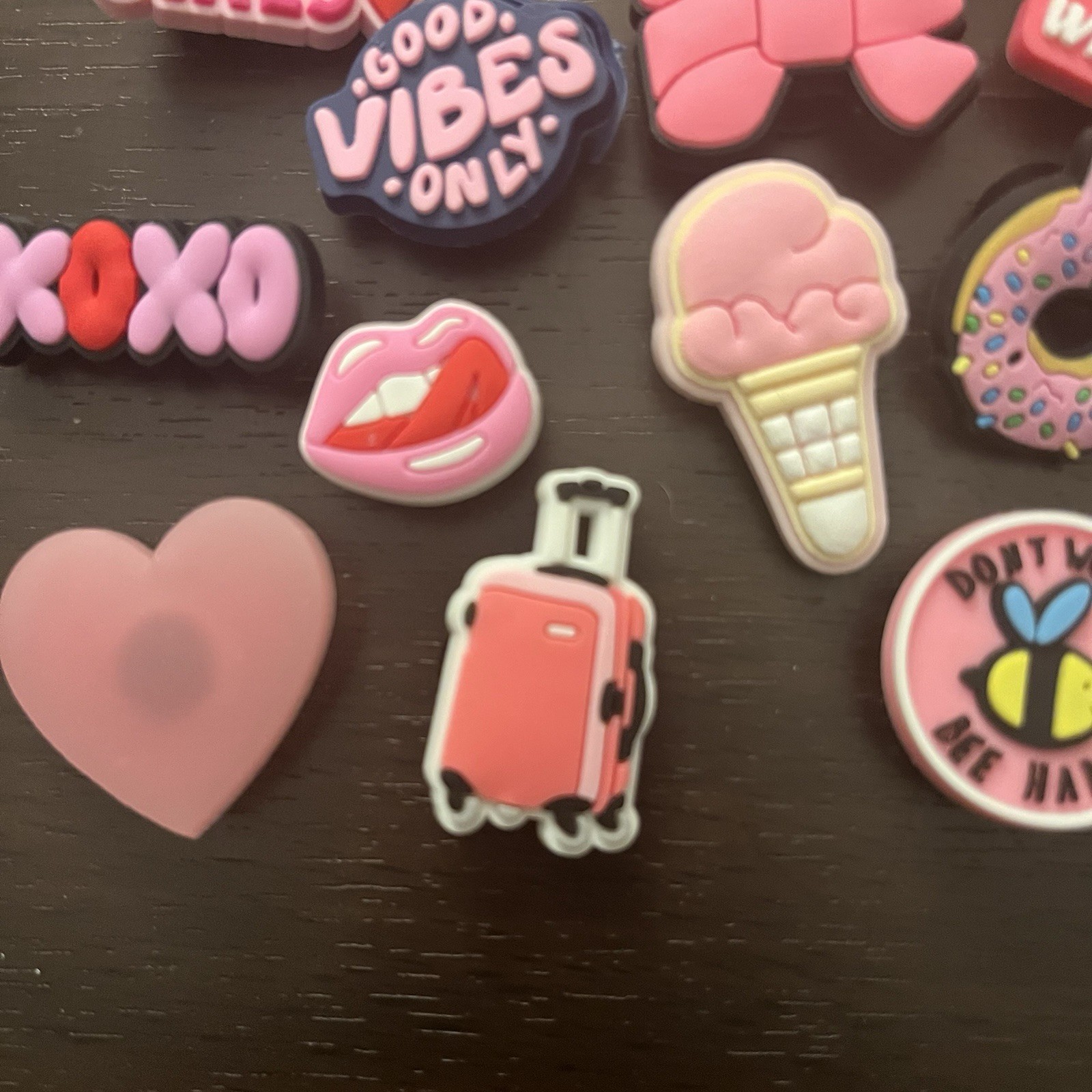 как выглядит 24-Piece Cute Pink Shoe Charm Set For Crocs / Girl Themed / Jibbitz Compatible фото