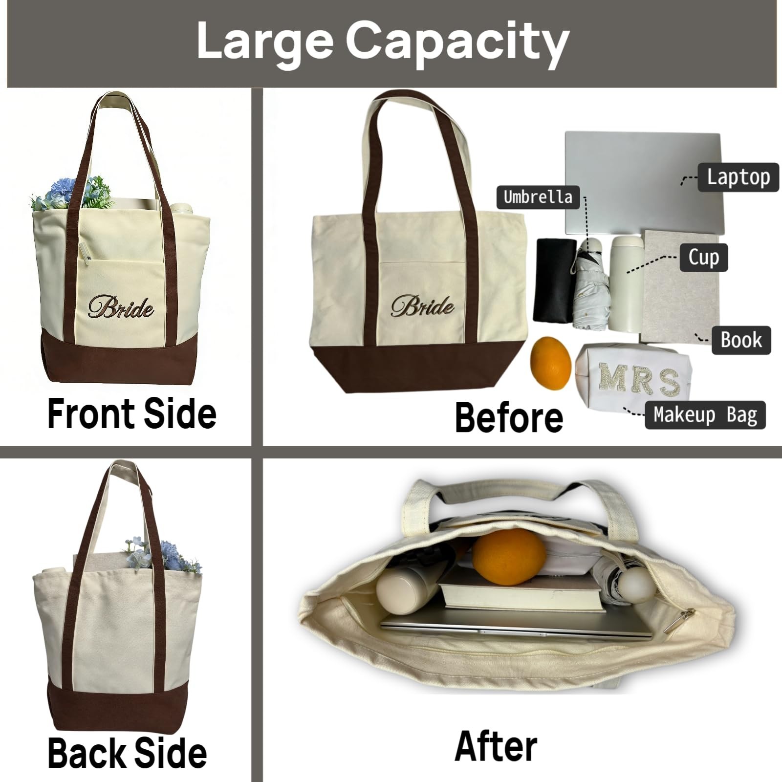 Bride Tote Bag Canvas Handbag Shoulder Bag Bridal Shower Gifts for Bride to b...