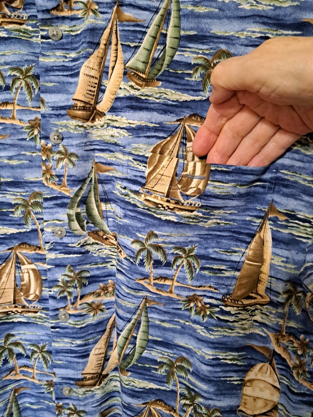 как выглядит Pierre Cardin Mens Cotton Short Sleeve Button-Up Boat Print Shirt XL фото
