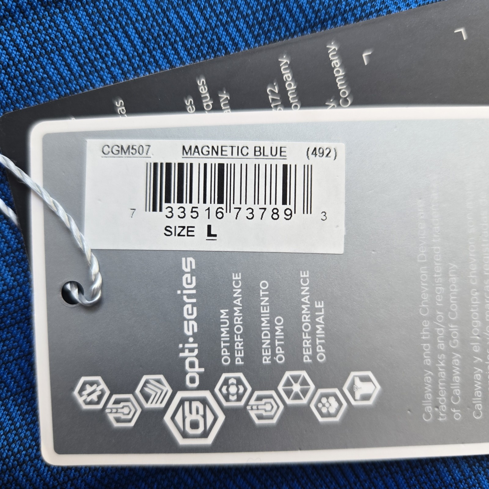 как выглядит Callaway Mens Golf Short Sleeve Polo Shirt Magnetic Blue Large Opti Dri Stretch фото