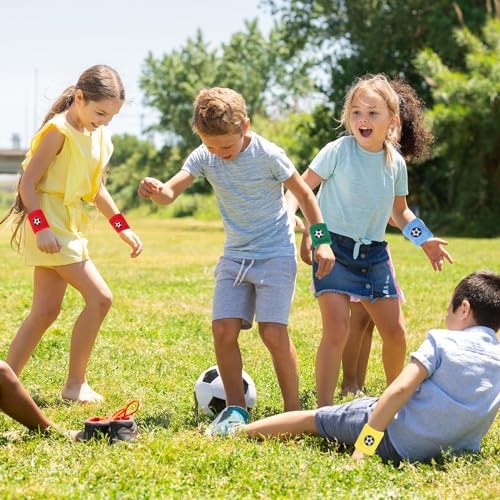 24Pcs Sports Wristbands for Kids Ball Pattern Wrist Sweatbands 6 Colors Soccer