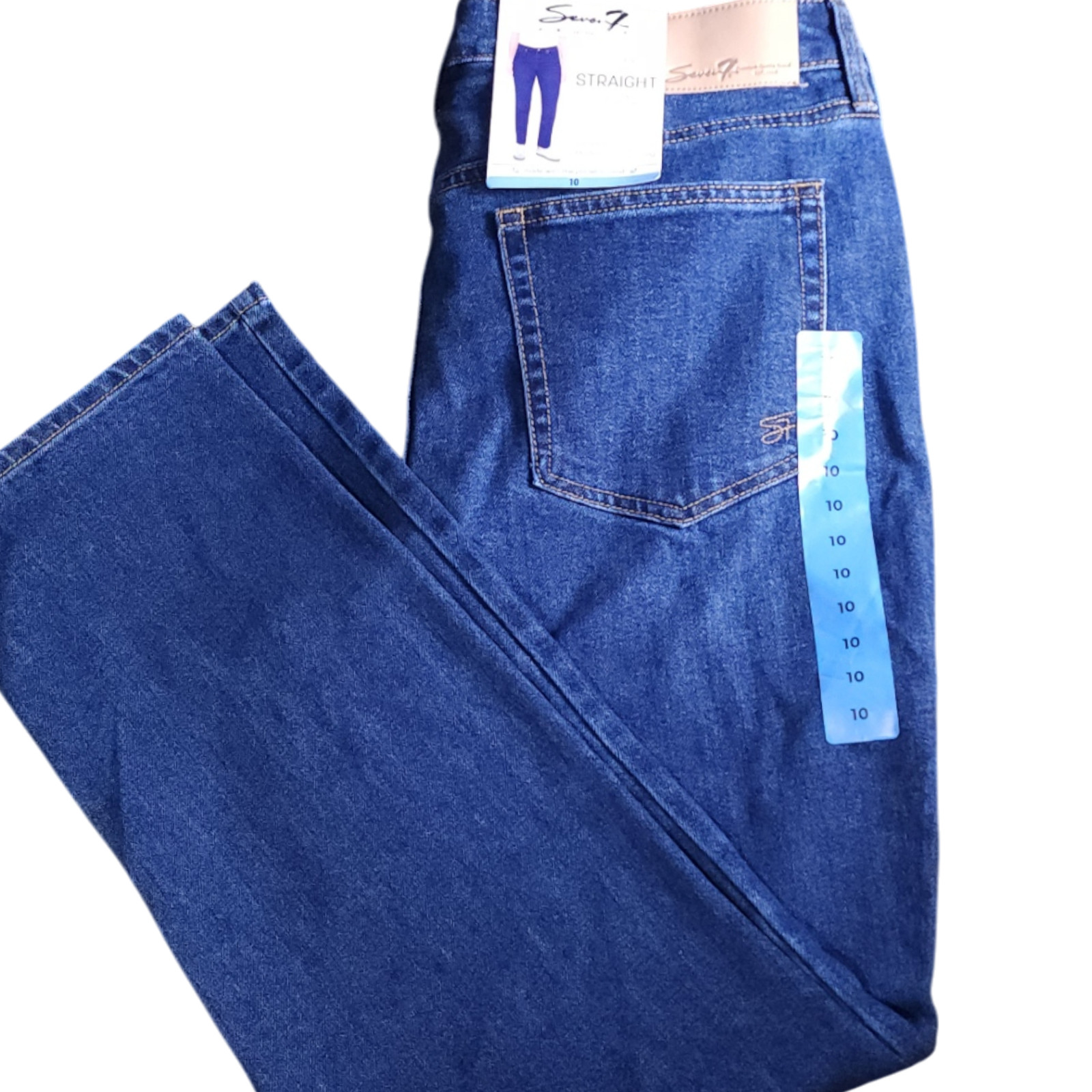 NWT Seven7 Women s 10 High-Rise Slim Straight Jeans Blue Stretch Denim