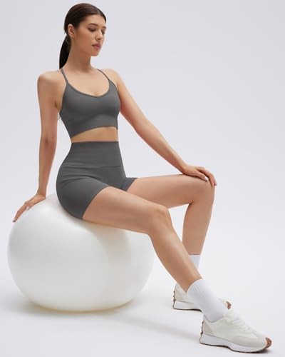 Women Seamless 2 Piece Workout Sets Criss Cross Sports Bra High Small Grey
