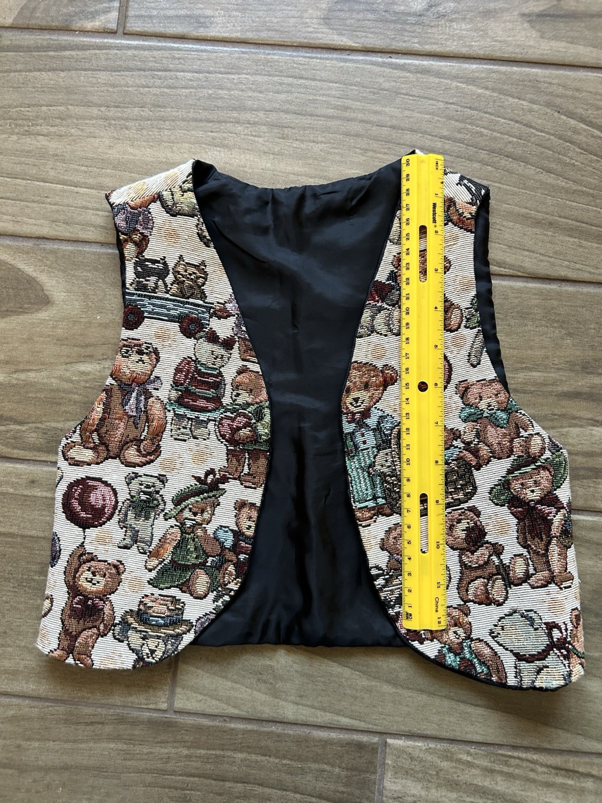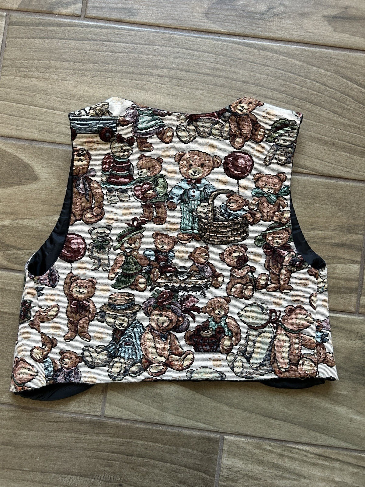 как выглядит VTG Teddy Bear Tapestry Lined Vest Child Doll Plush 90 s Open Front Novelty фото