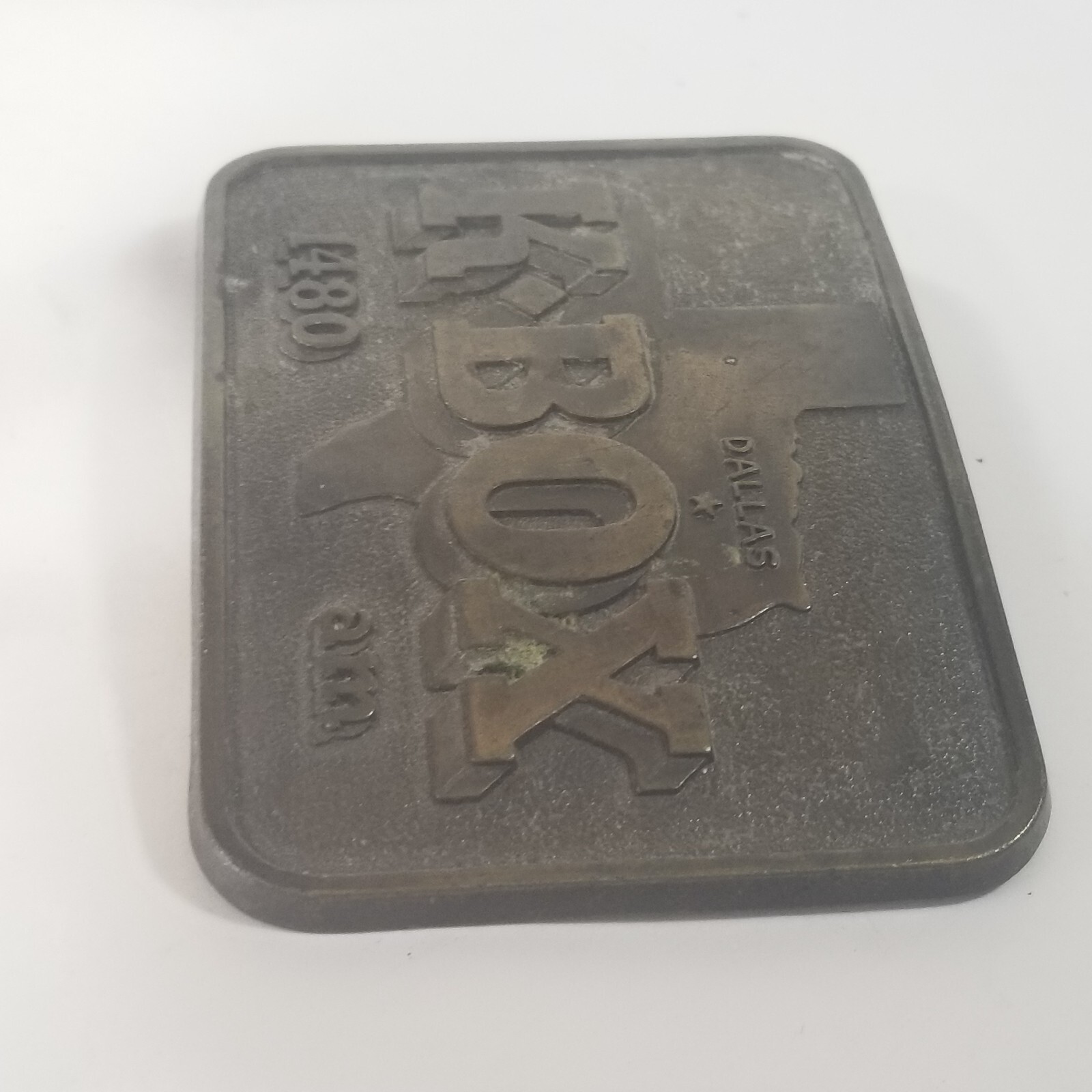 Vintage Brass Belt Buckle KBOX Dallas Radio 1480 AM