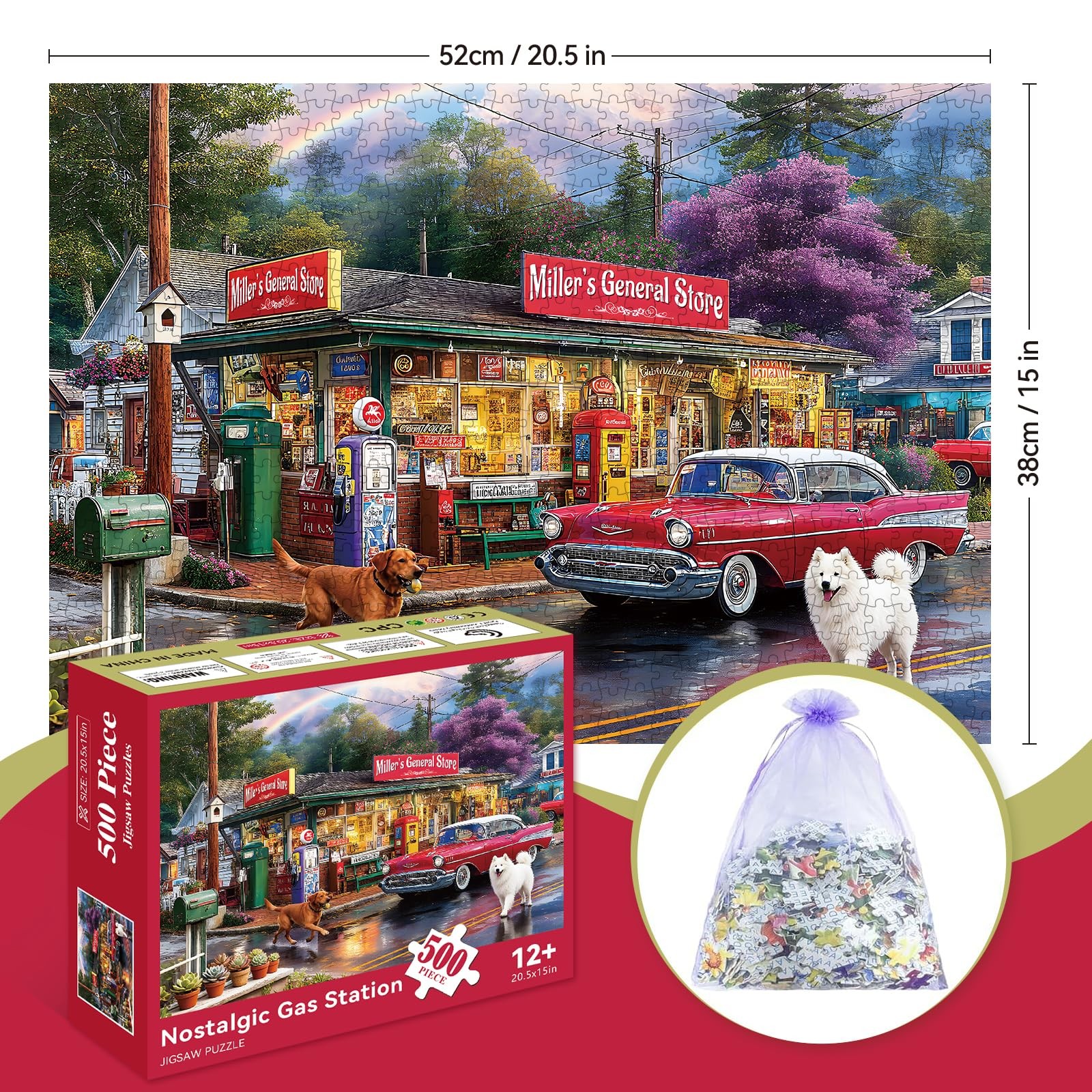 500 Pieces Puzzle for Adults, Puzzles for Adults 500 Pieces, Vintage Gas Stat...