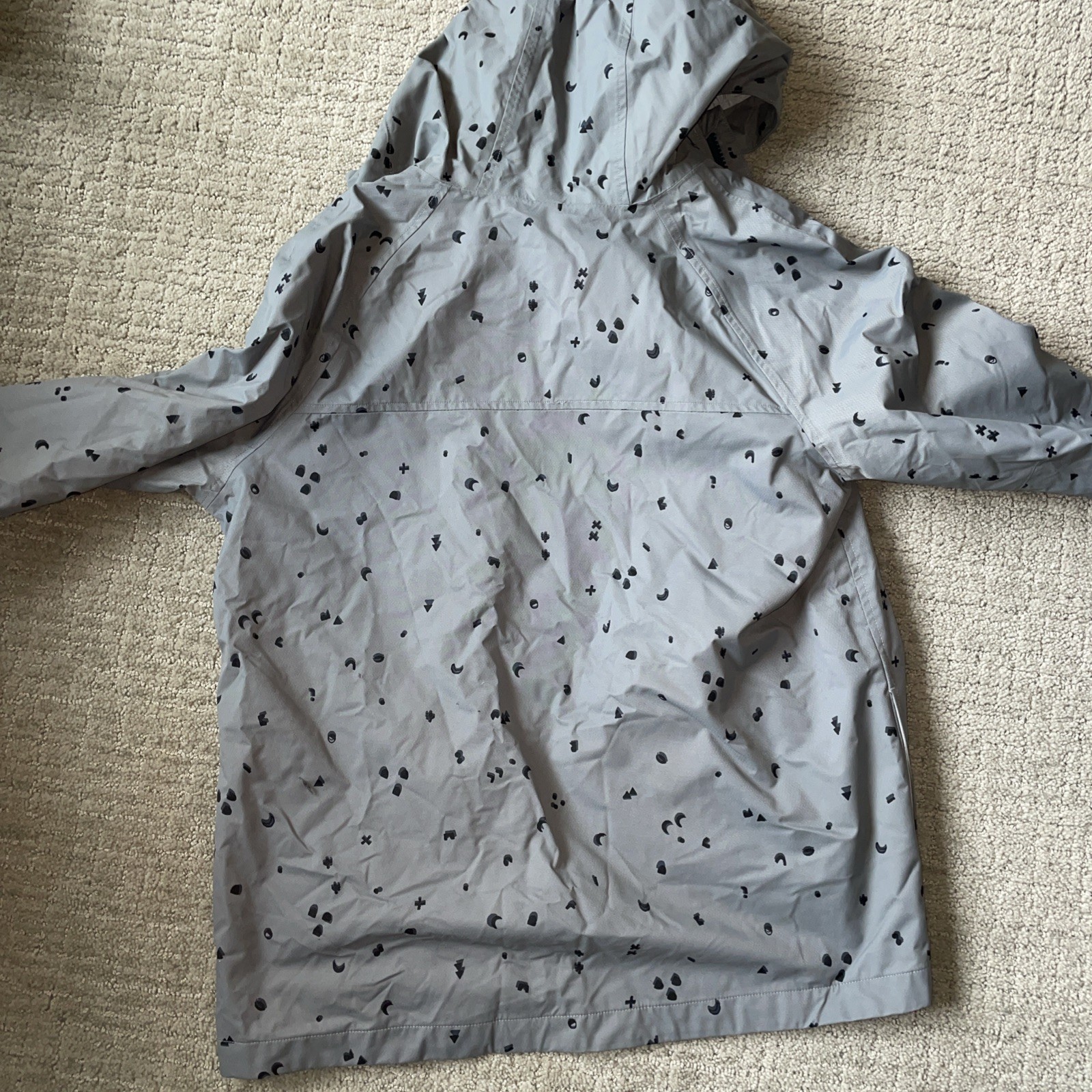 как выглядит REI CO-OP Rain Hooded Jacket Boys 14-16 Large Gray Black All Over Print Casual фото