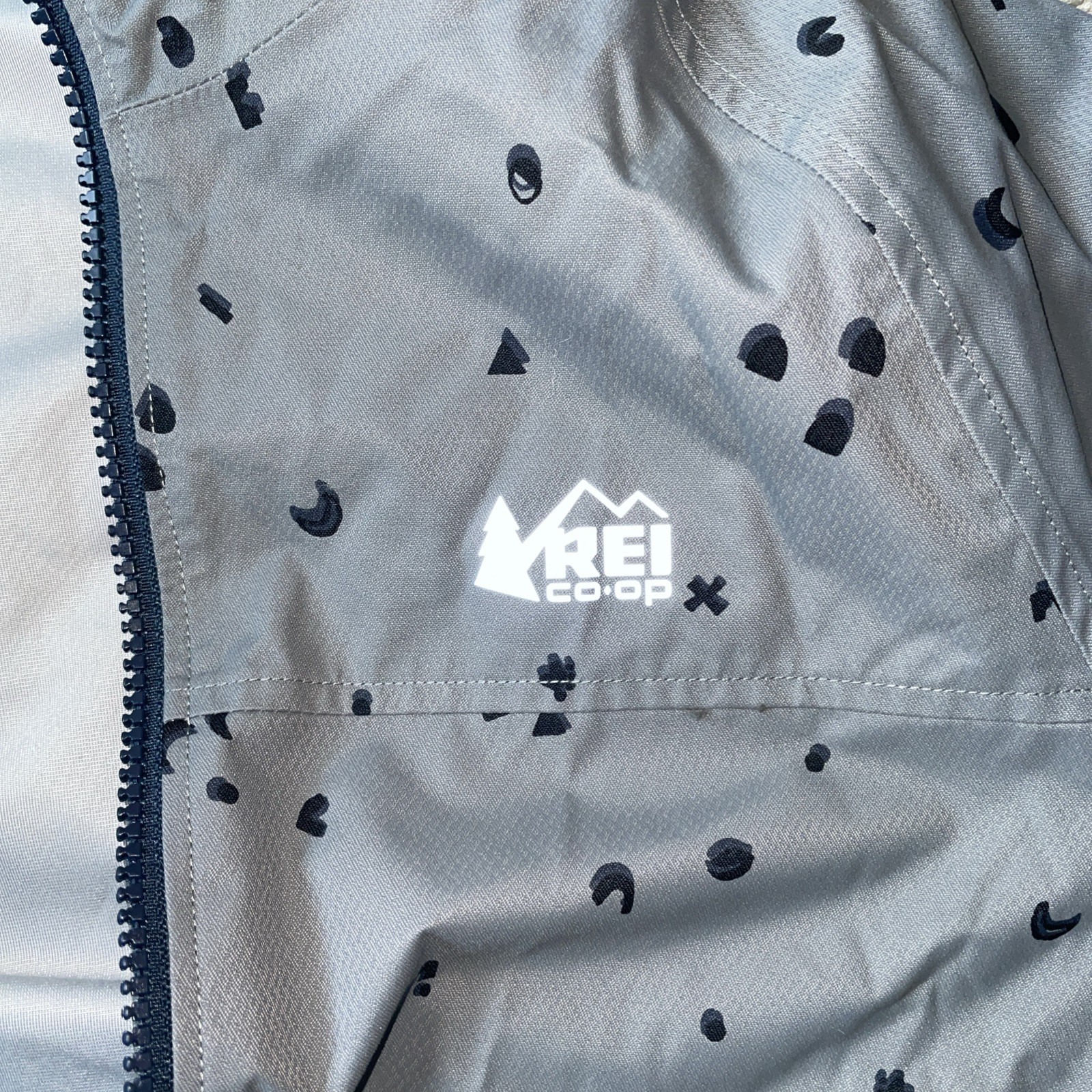 REI CO-OP Rain Hooded Jacket Boy's 14-16 Large Gray Black All Over Print Casual