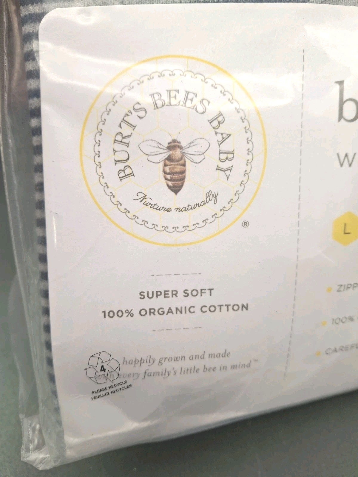 NEW Burts Bees Baby Beekeeper Wearable Blanket Organic Cotton Sz LG 12-18M Soft