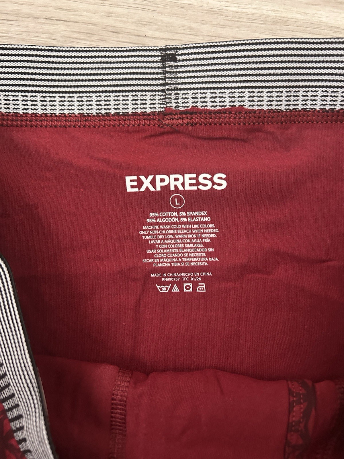 как выглядит Express Cotton Stretch Fly Front Boxer Briefs, Large, Maroon Stars, NWOT фото