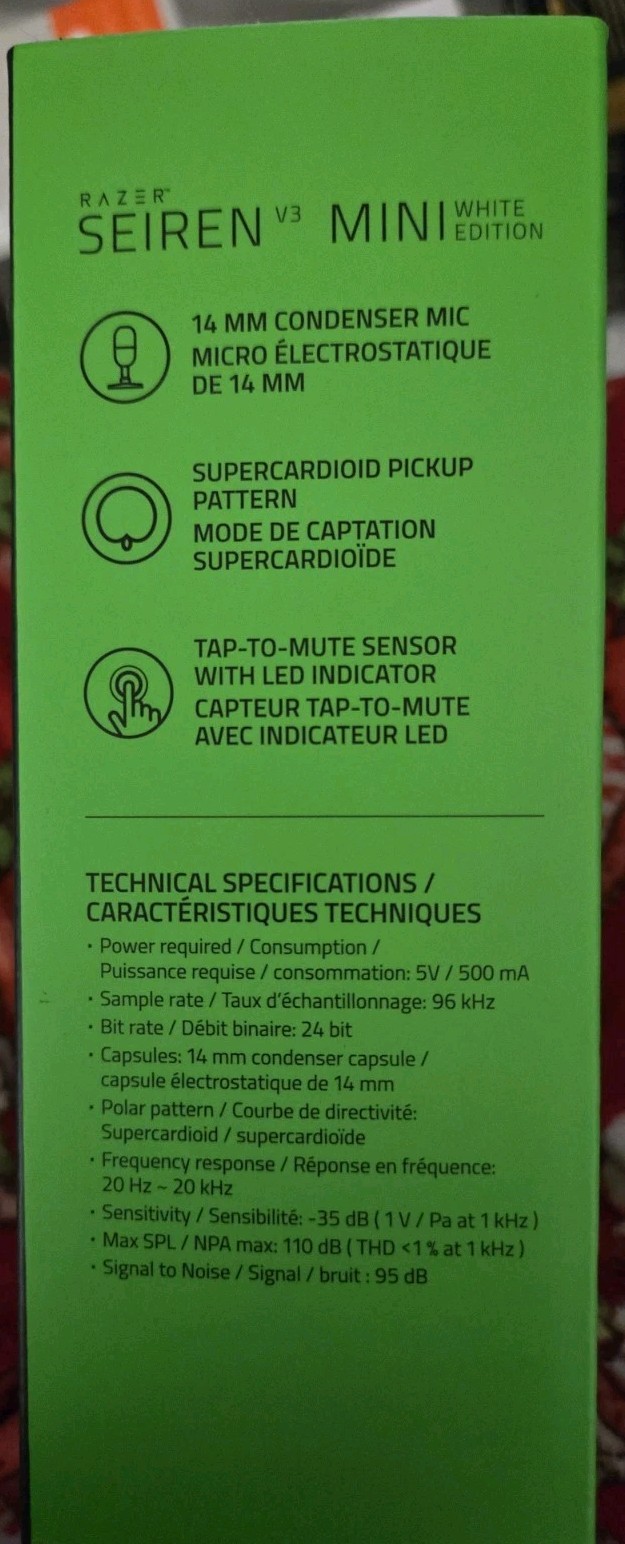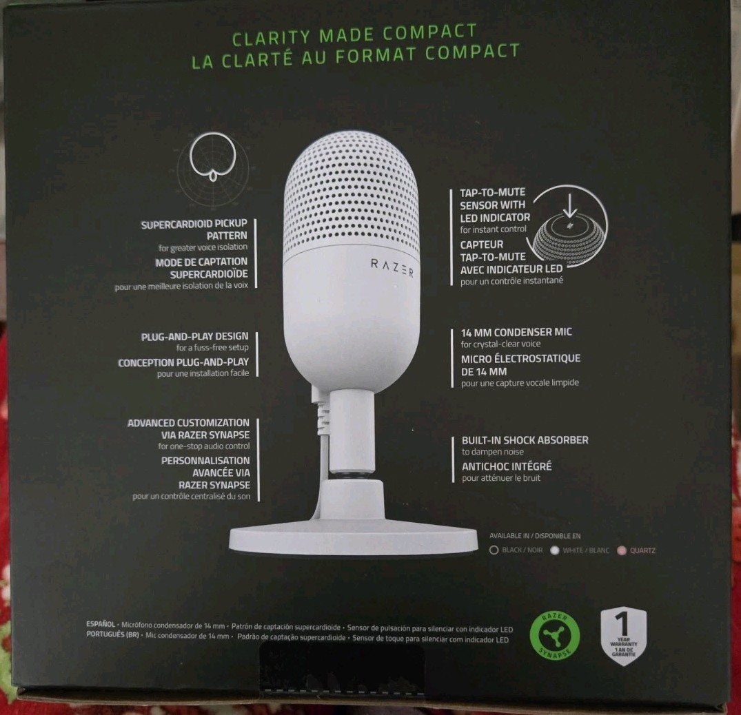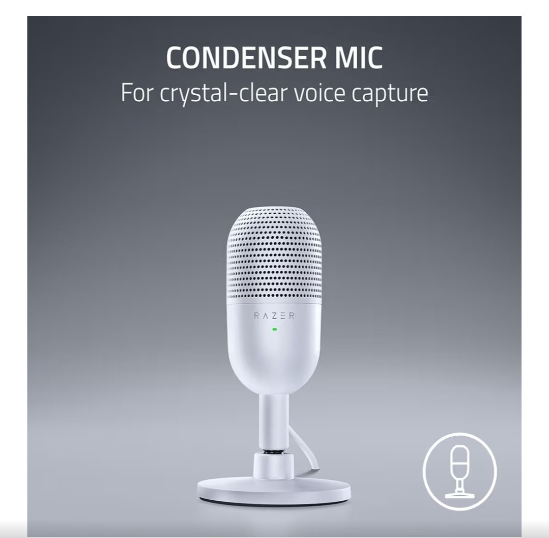 Razer Seiren V3 Mini USB Microphone: Condenser Mic - Supercardioid Pickup White