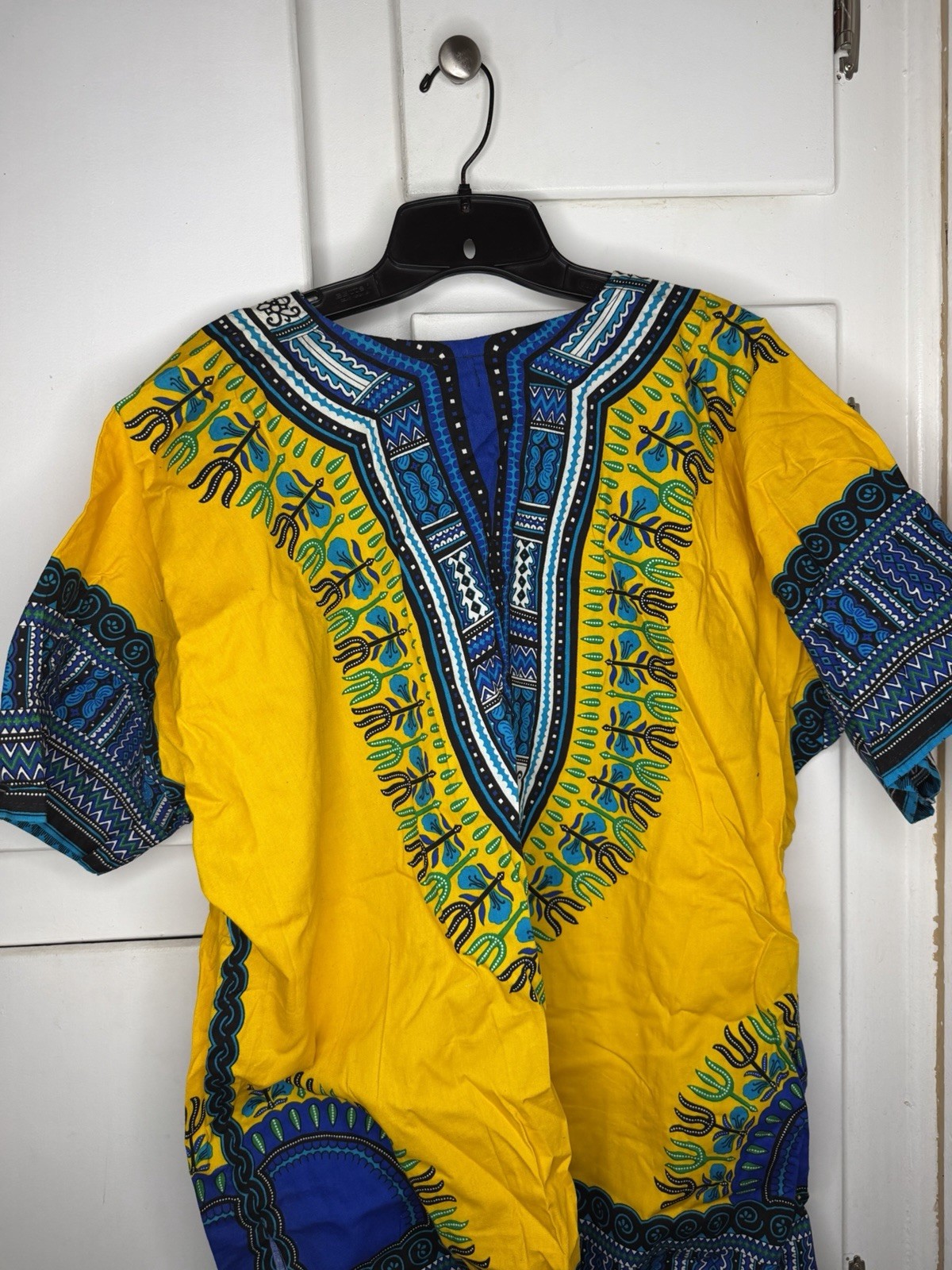 как выглядит Yellow Blue Dashiki Cotton Shirt Traditional African Ethnic Unisex One Size фото