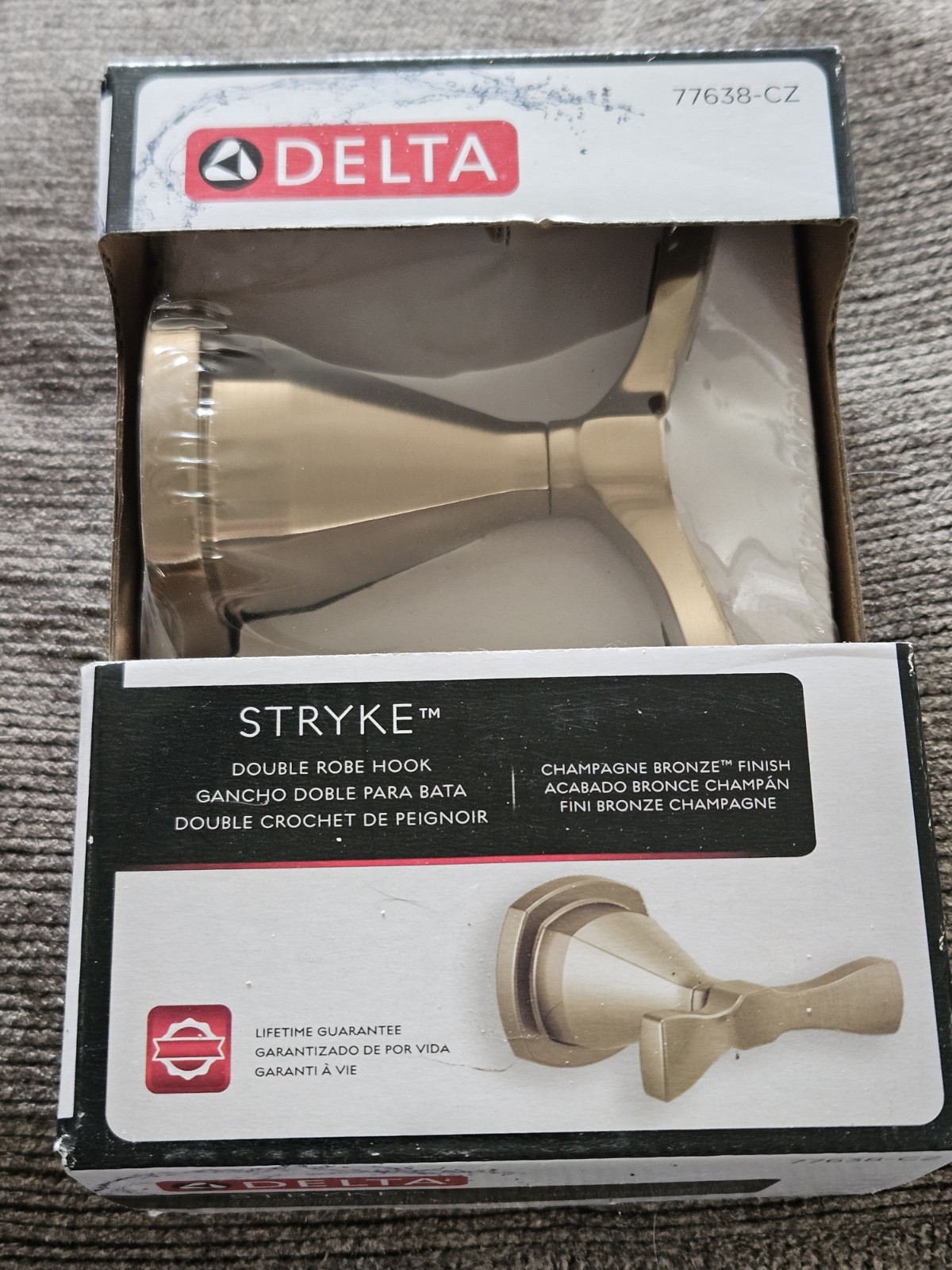 New Delta Stryke Double Robe Hook in Champagne Bronze Finish 77638-CZ