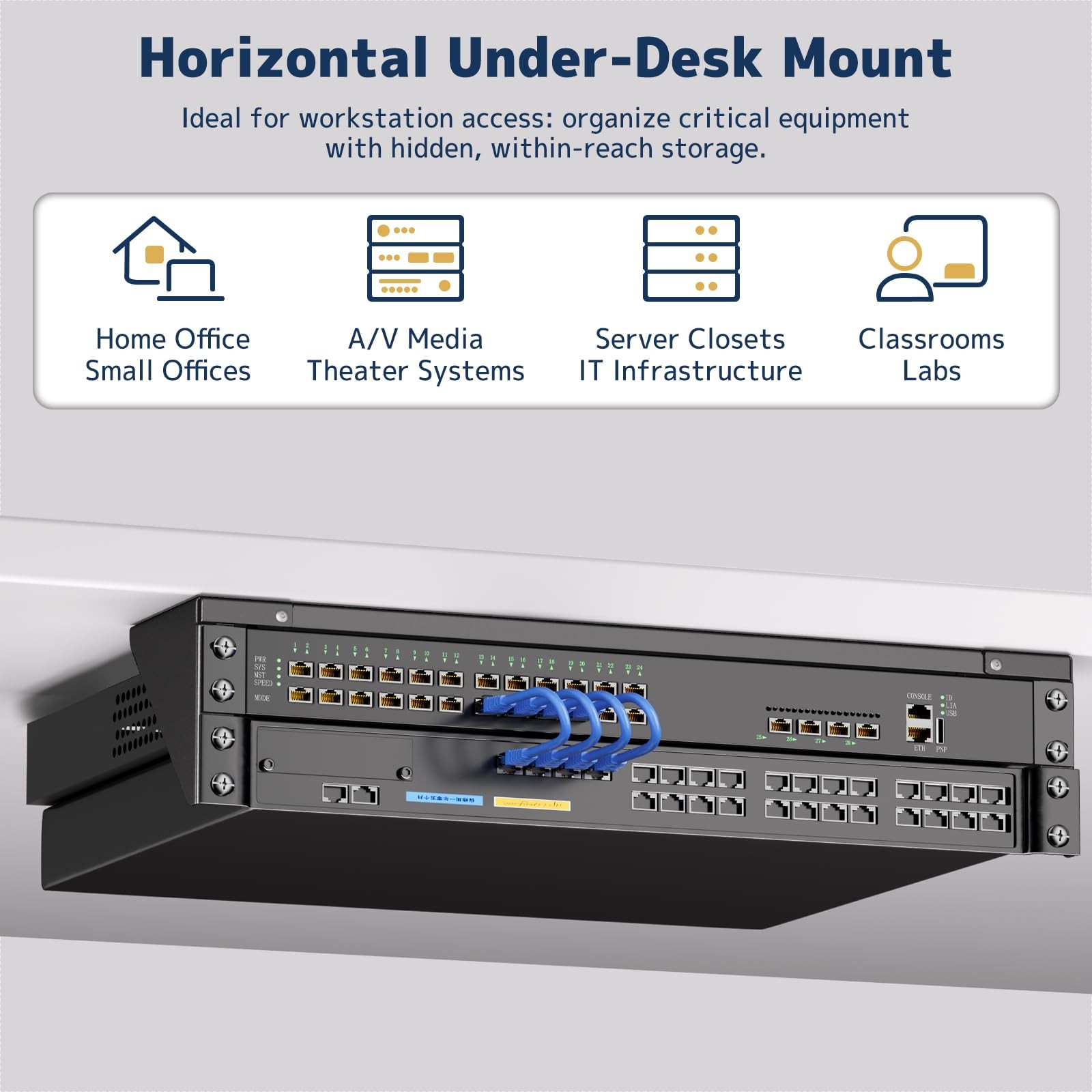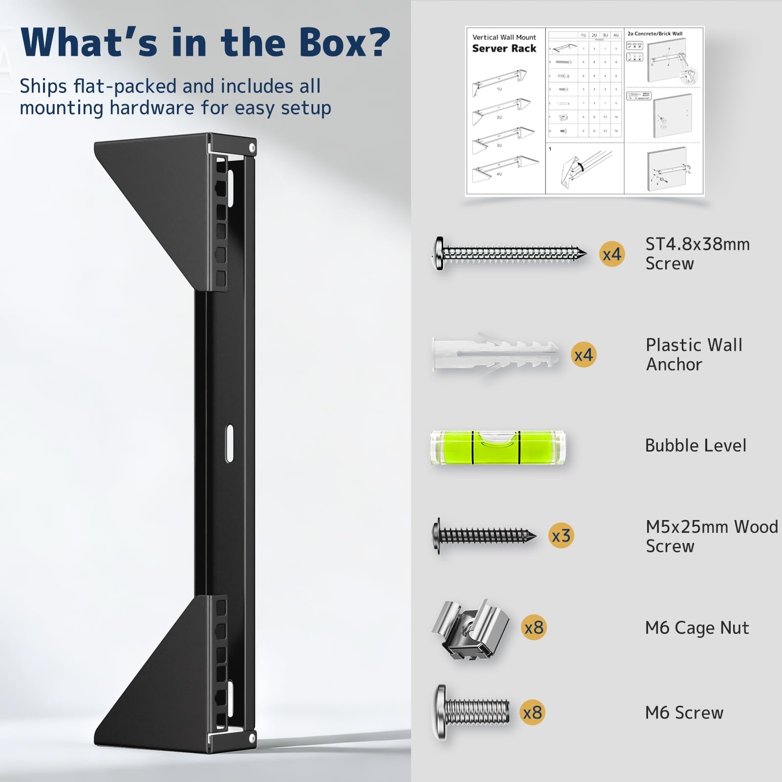 2U Vertical Wall Mount Rack - 19 Steel Wall Under-Desk Bracket for Server,...