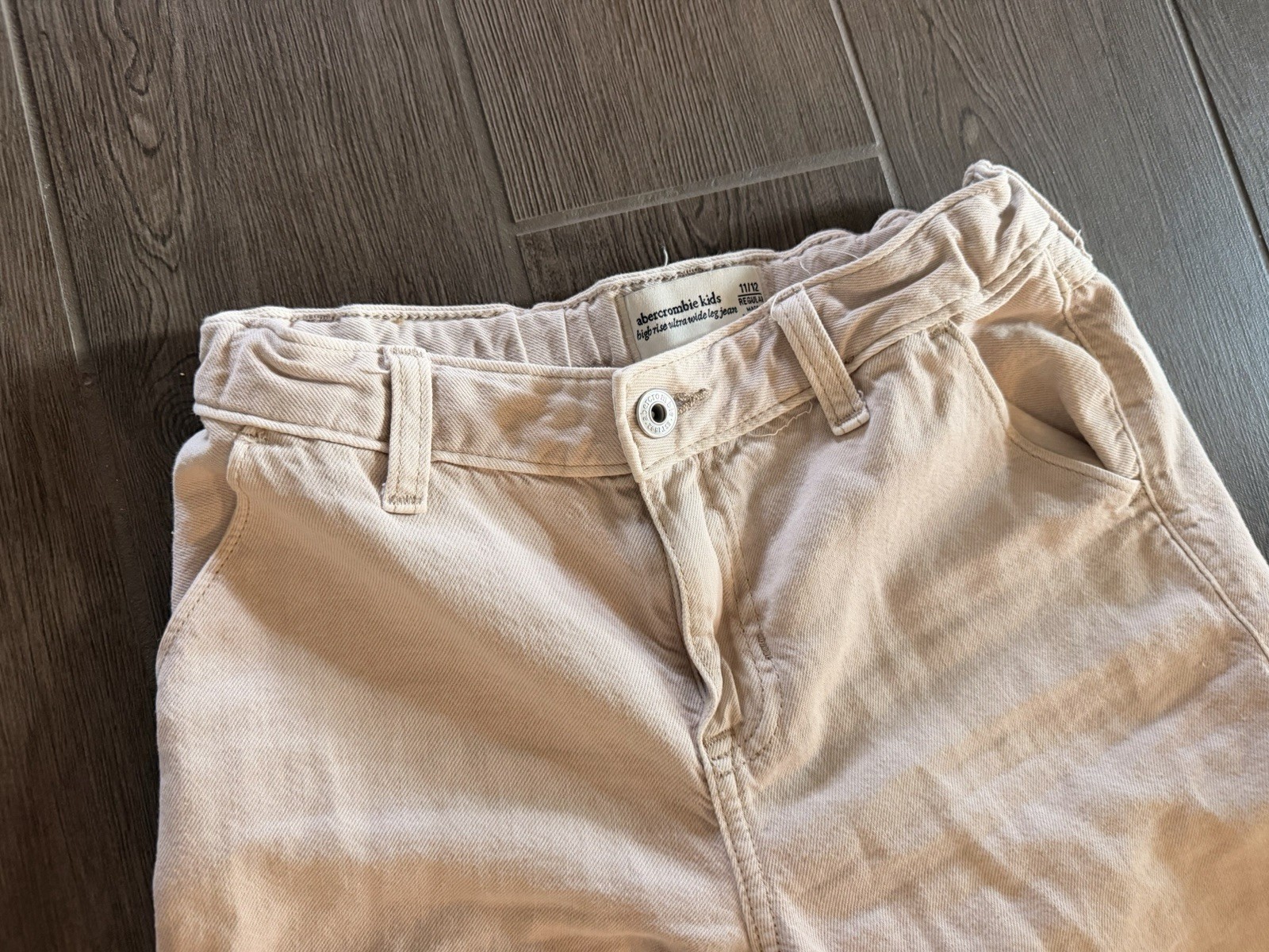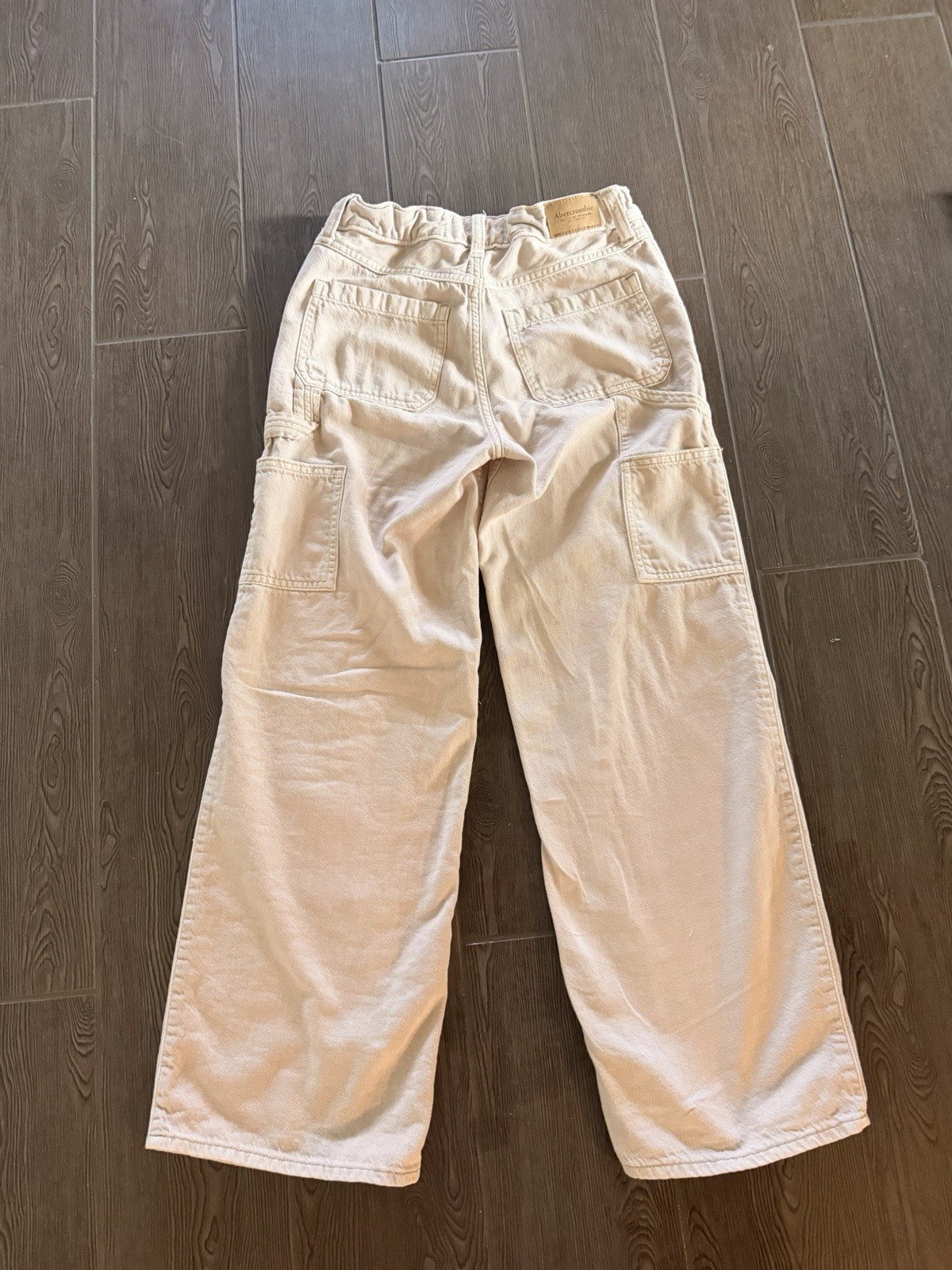как выглядит Abercrombie Kids Wide Leg High Rise Cargo Pants Beige Cotton Patch Pockets size фото