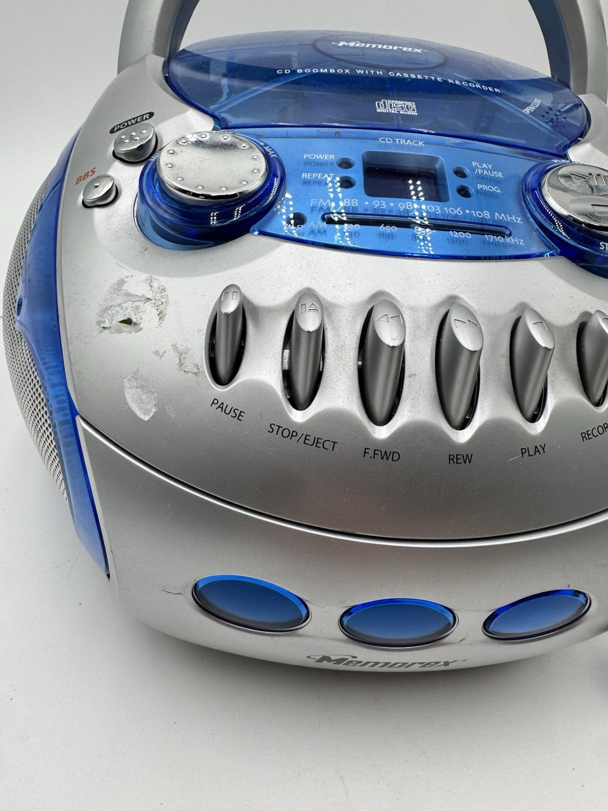 Vintage 2004 Clear Blue Memorex MP3227 Radio Stereo Boombox CD Cassette Player