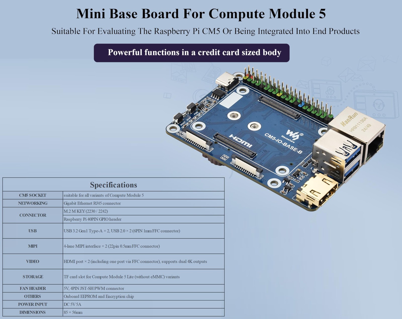 как выглядит Mini Base Board B with Raspberry Pi Compute Module 5, Onboard EEPROM and En... фото