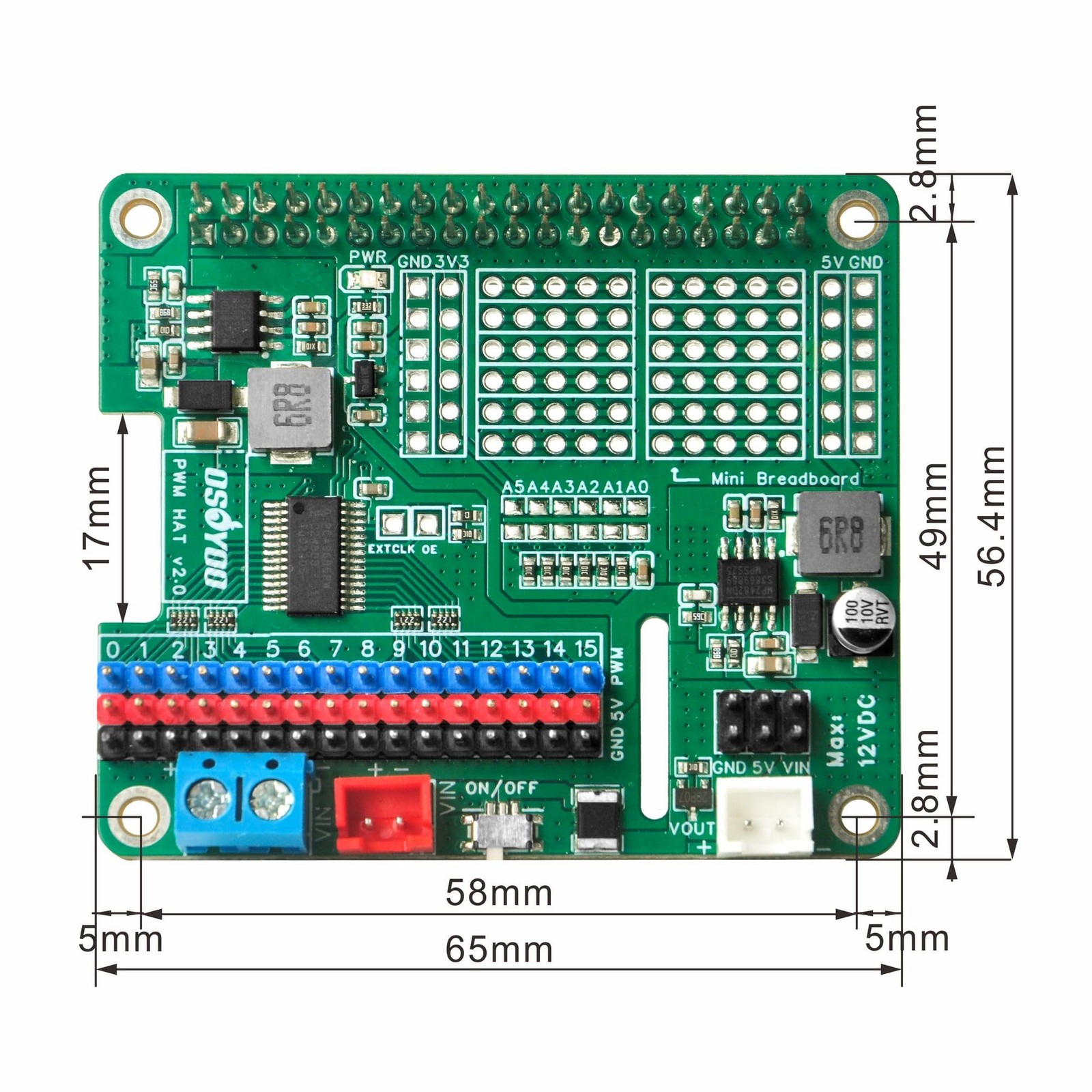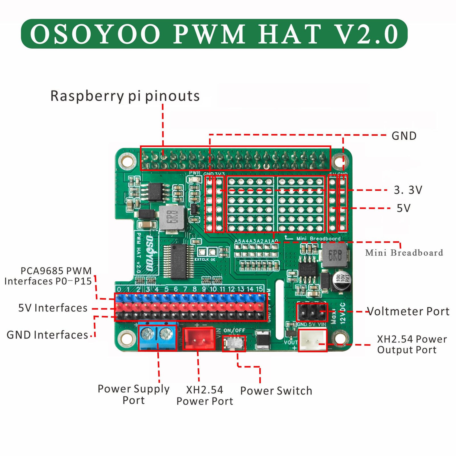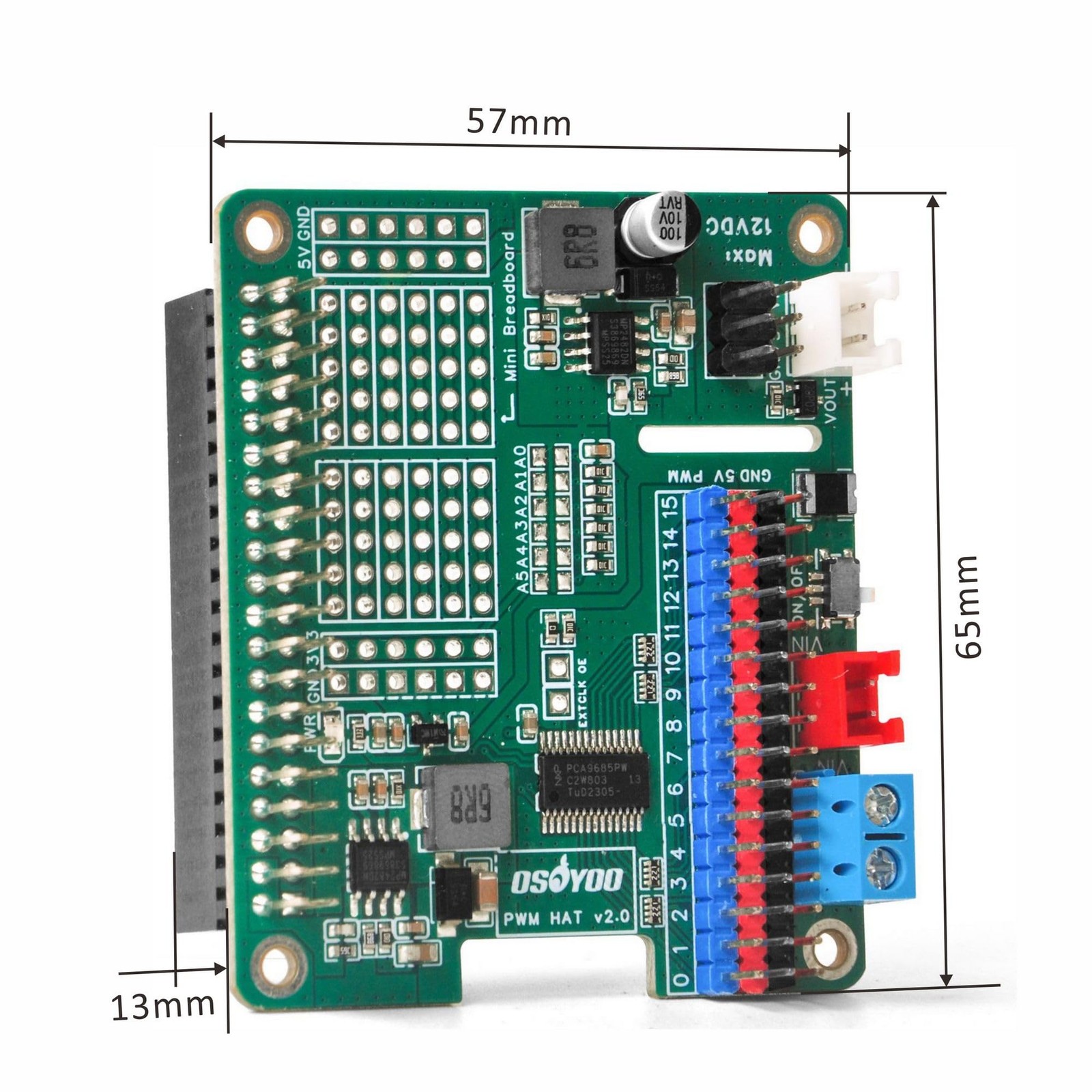 Servo Motor Control HAT - Battery Adapter, 16-Channel PWM for Raspberry Pi ...