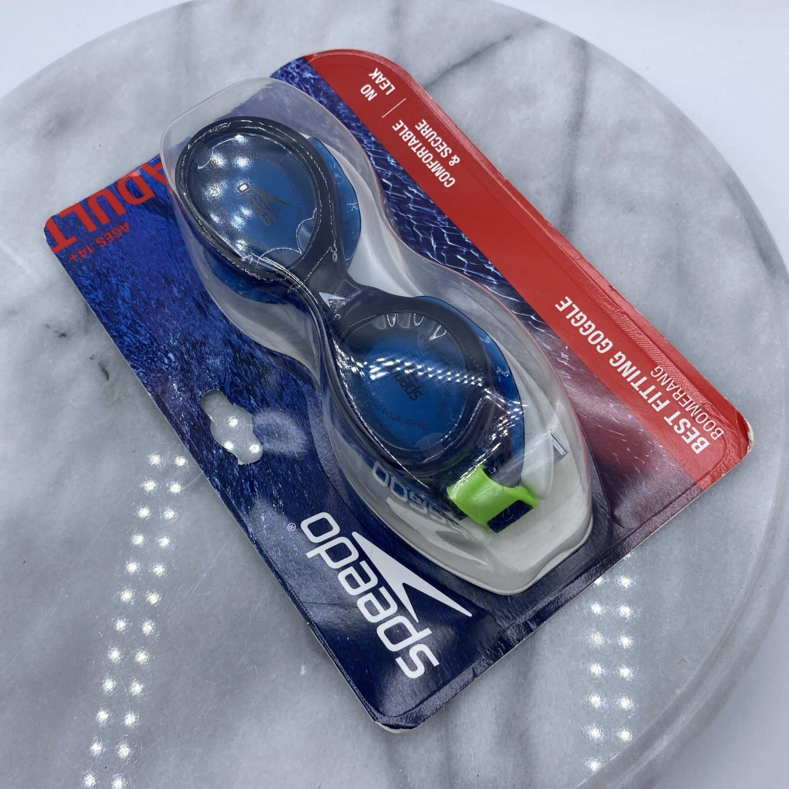New Speedo Adult Boomerang Fitting Swim Goggles - Blue Cobalt, Ages 14 Adjusts