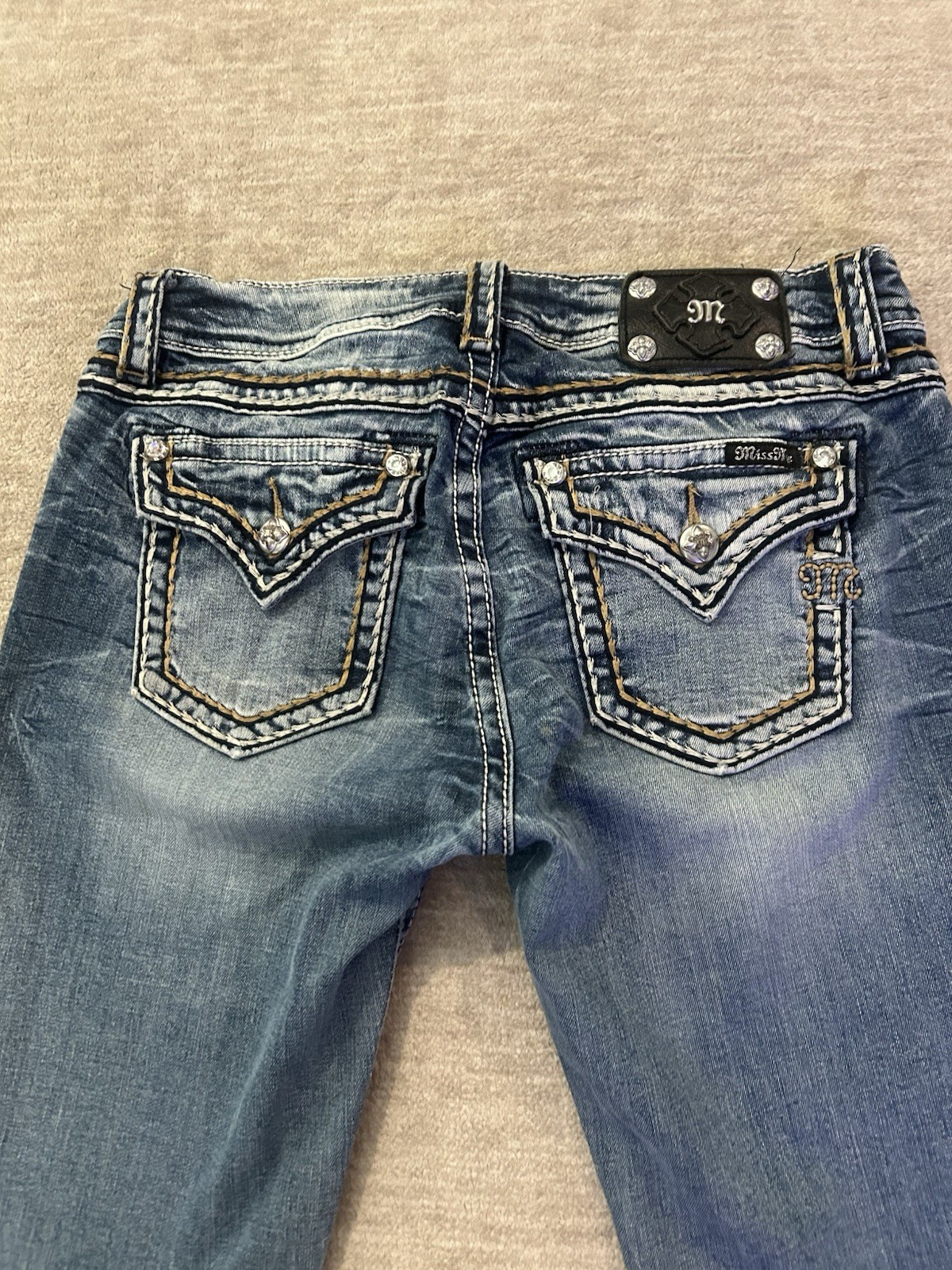 как выглядит Miss Me Womens Size 30 Cropped Jeans Capri Distressed Stretch Medium Wash фото