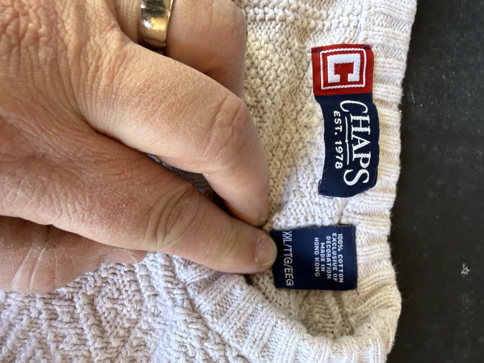 как выглядит Chaps Cable Knit Sweater XL Beige Cotton Crewneck Classic Casual фото