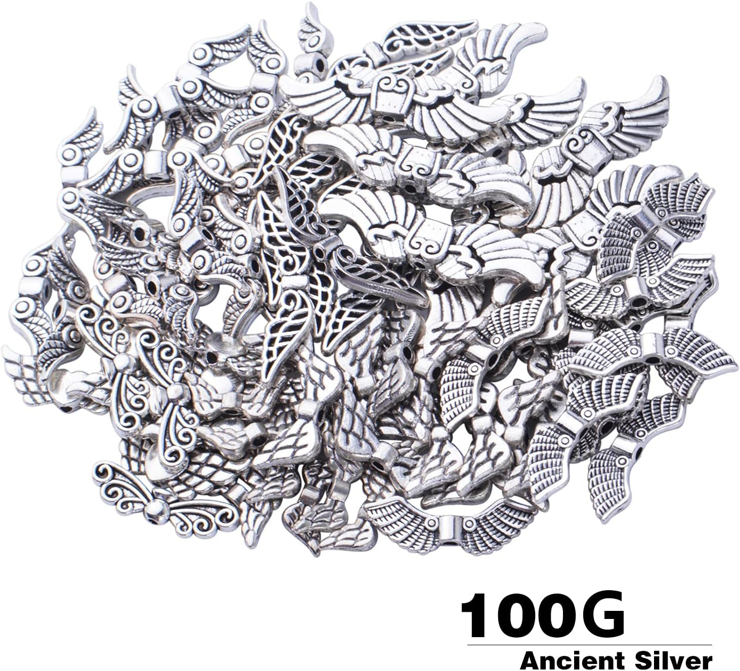 Antique Silver Angel Wing Spacer Beads - Tibetan Alloy Fairy Wing Charm Beads fo