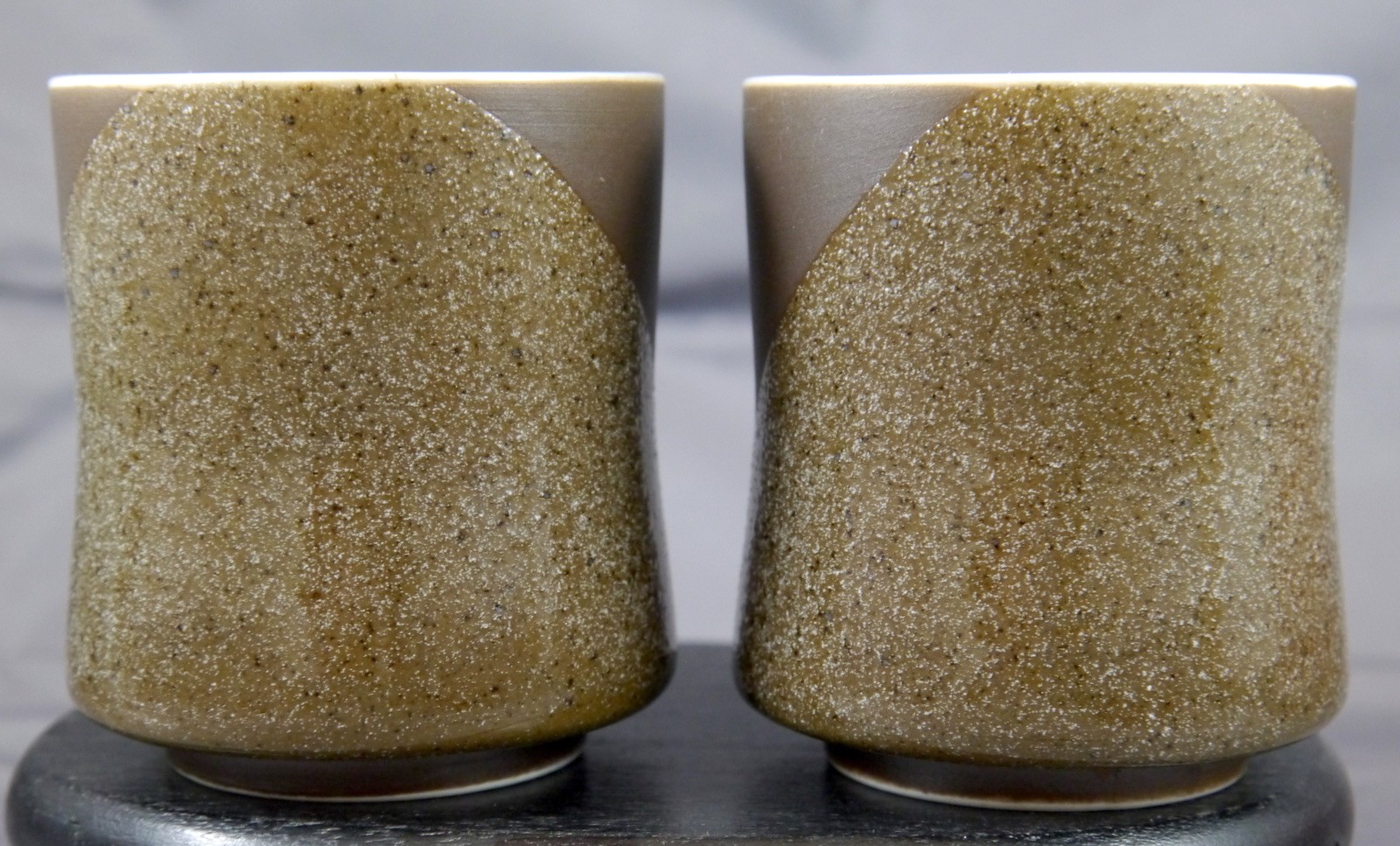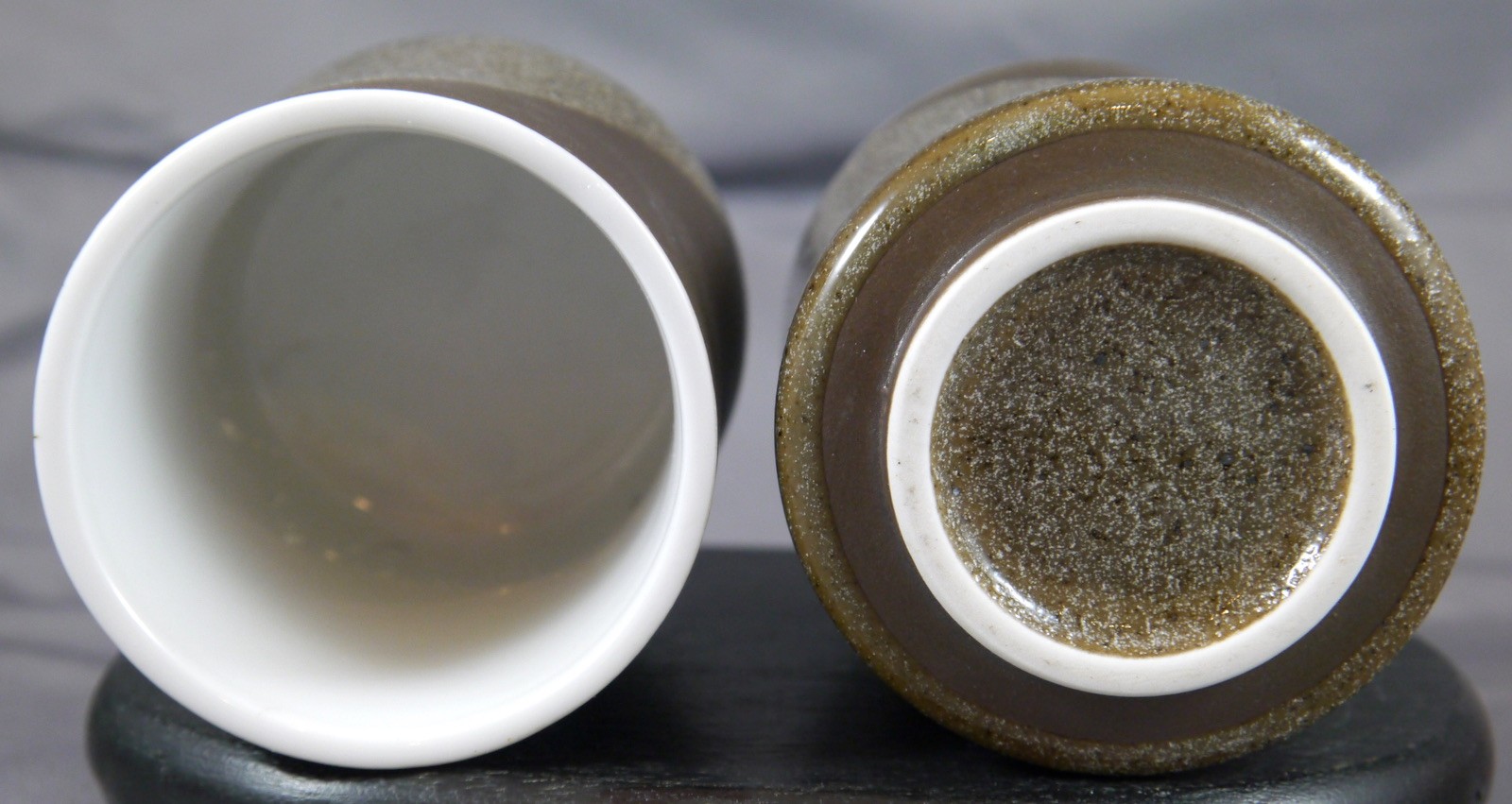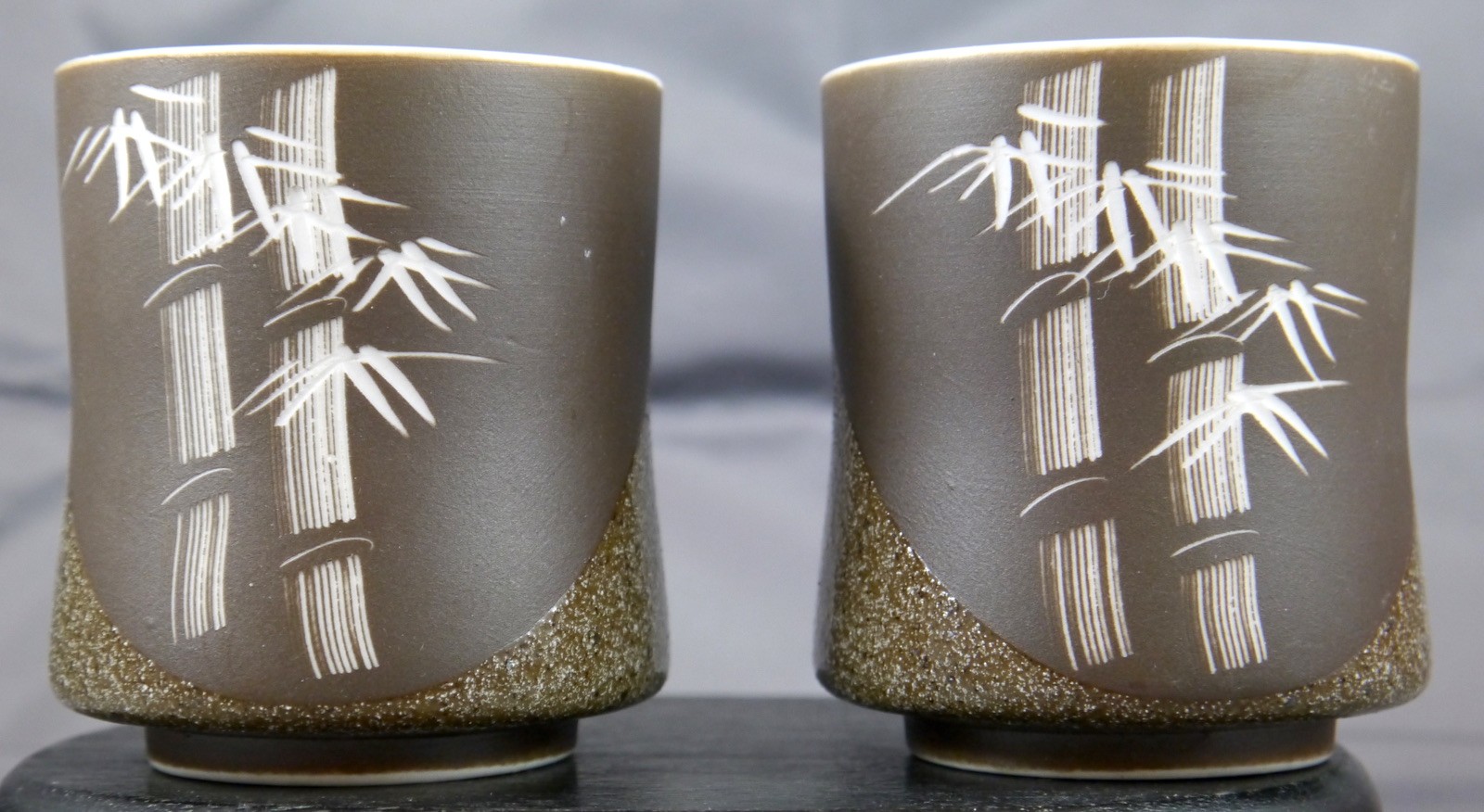 как выглядит 2 Japanese Yunomi Porcelain Teacups. 2 Tone Brown, Cut to White Bamboo Artwork фото