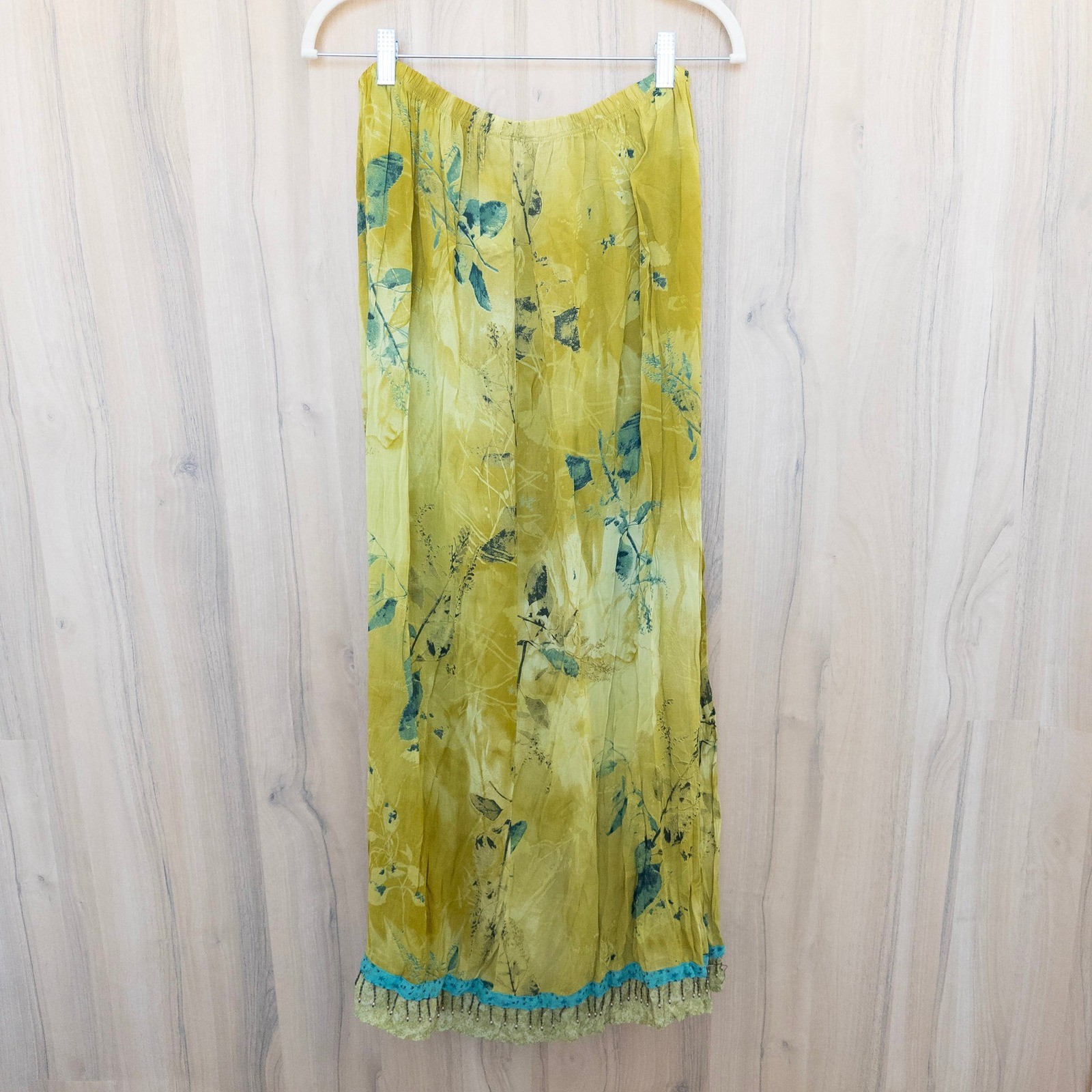 как выглядит VTG Carole Little Womens Maxi Skirt Sz 12 Yellow Beaded Forest Fairy Boho Earthy фото