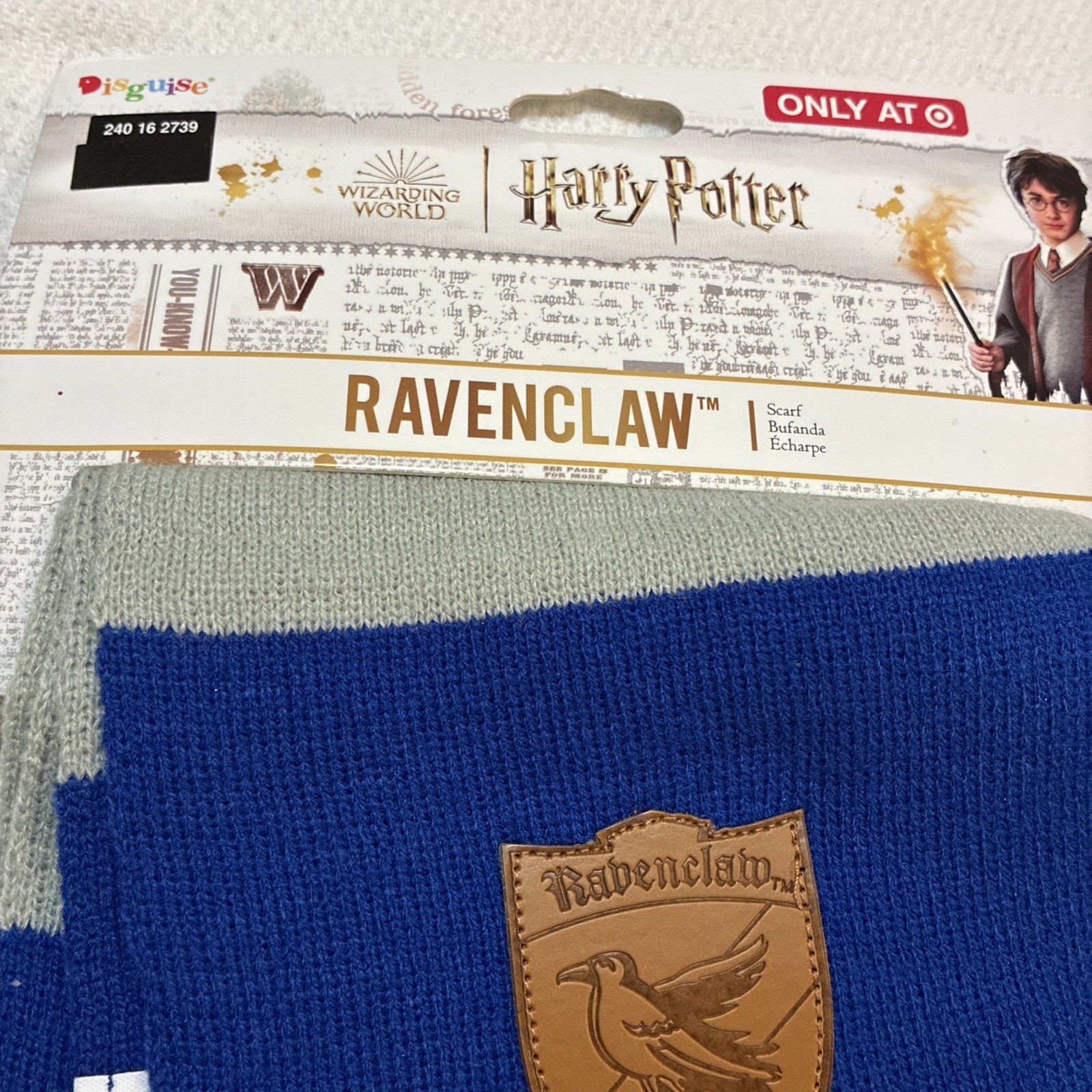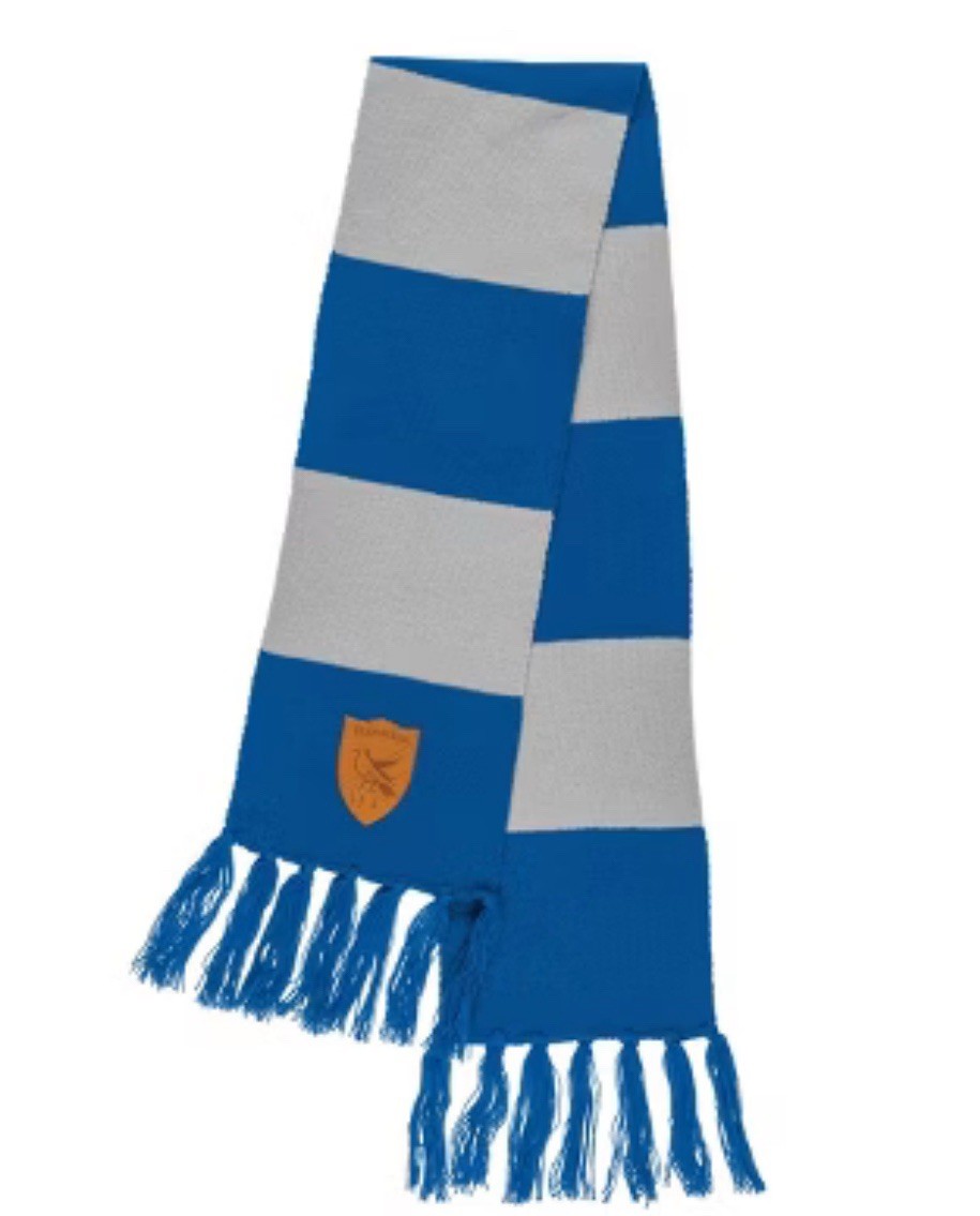 • Harry Potter Wizarding World Blue/Gray Striped Fringe Trim Ravenclaw Crest Scarf