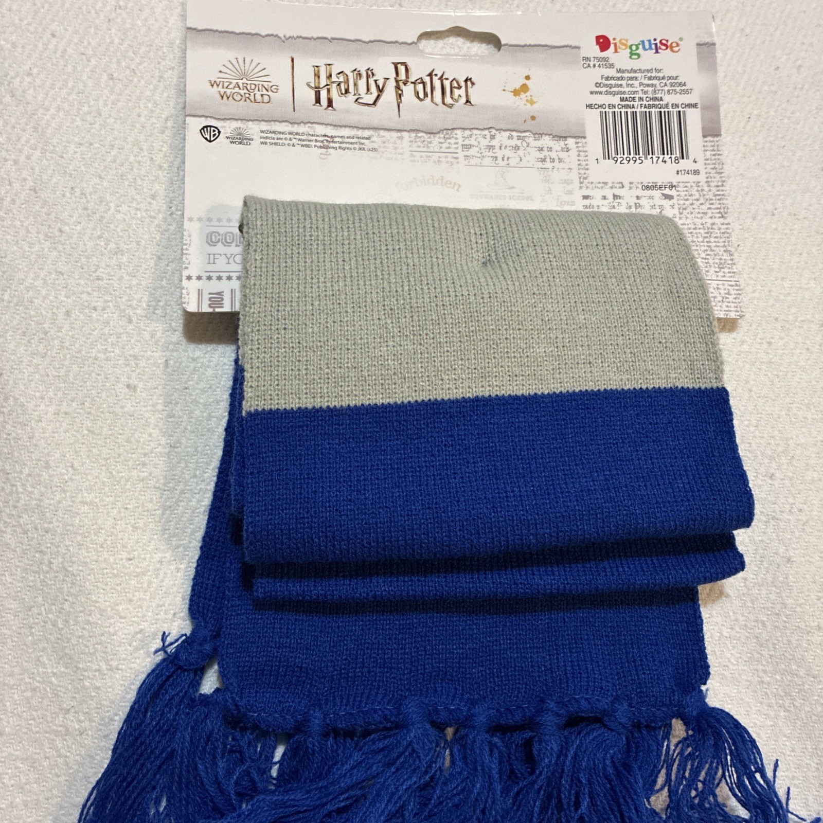 как выглядит Harry Potter Wizarding World Blue/Gray Striped Fringe Trim Ravenclaw Crest Scarf фото