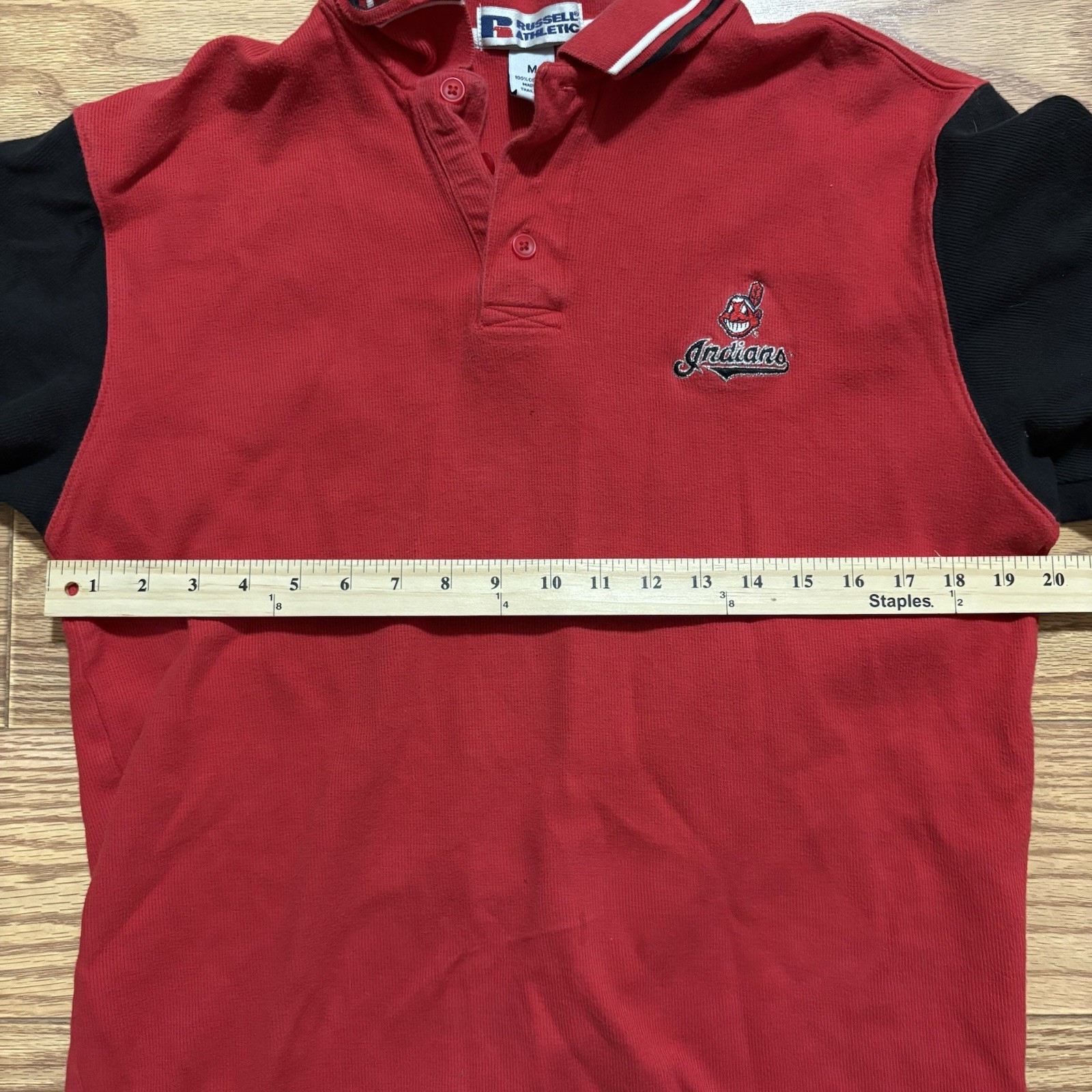 Vintage MLB Cleveland Indians Polo Shirt Size M by Russell Athletics Red Logo