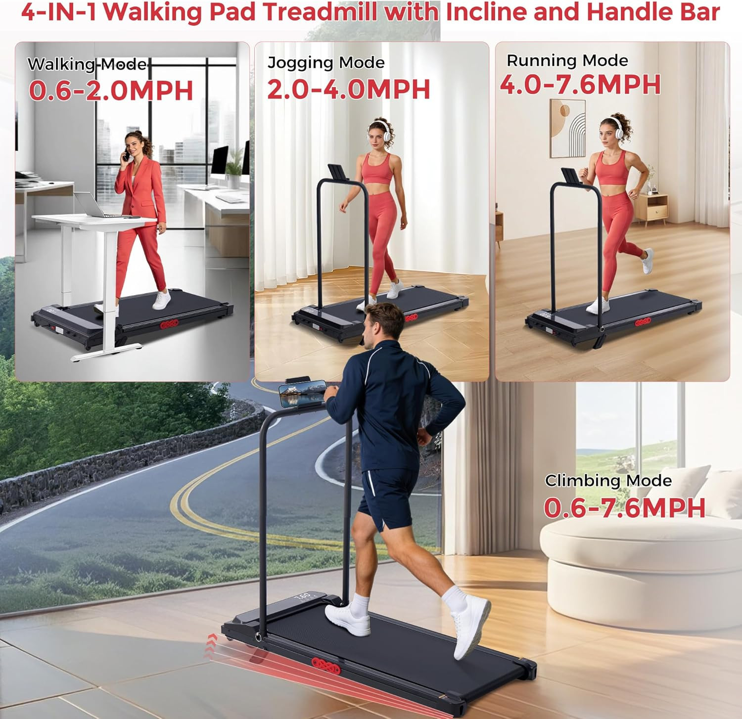 Additional Features: 3.0HP Walking Pad with Incline and Incline Under the Desk Treadmi