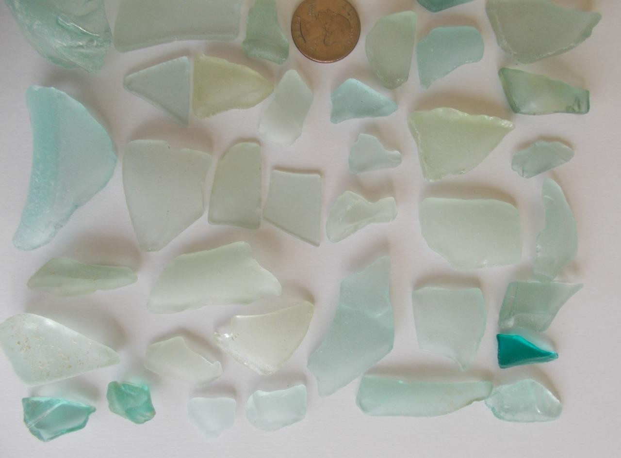 56 Pieces Aqua Frosted Maine Sea Glass Genuine Surf Tumbled Beach Glass