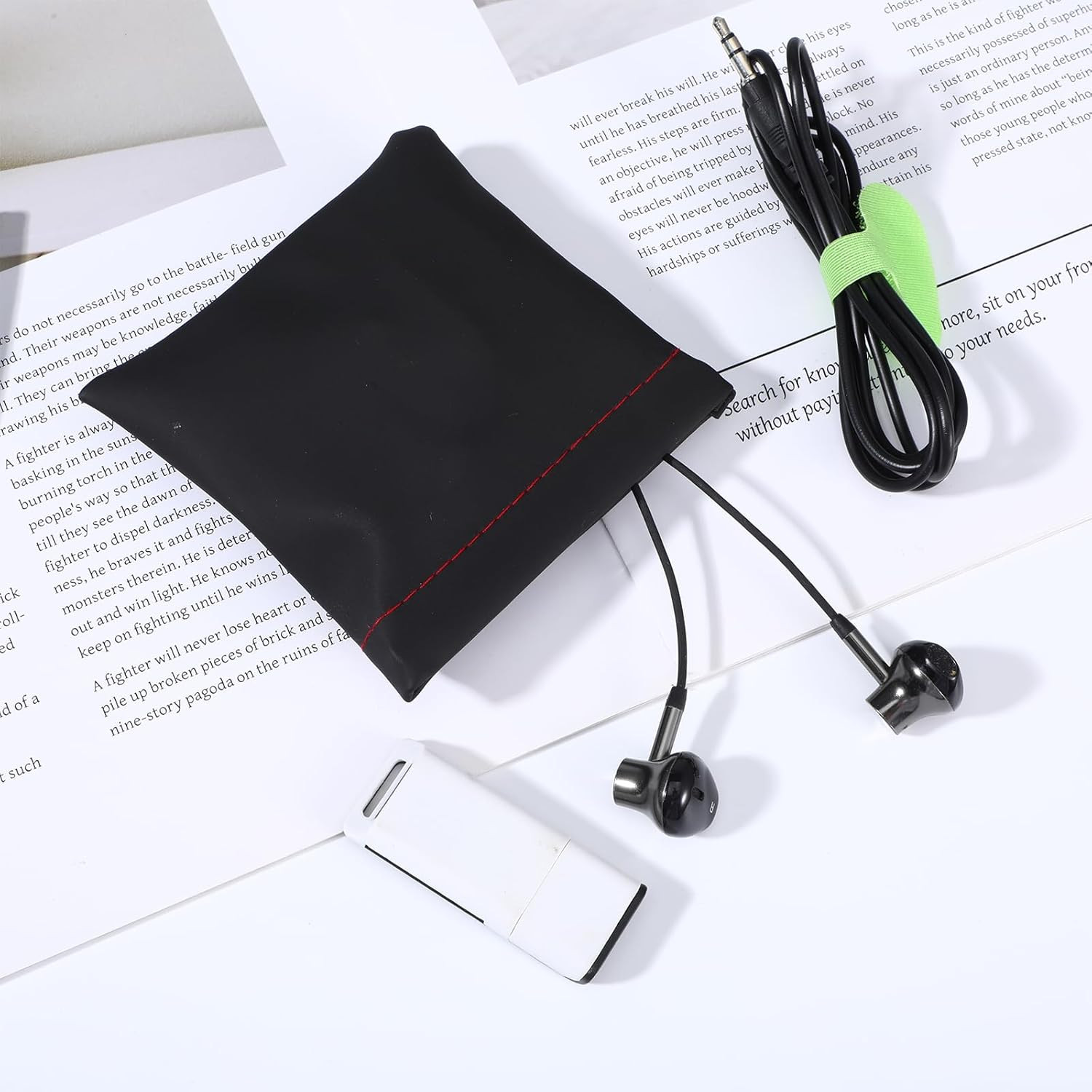 4Pcs PU Leather Earphone Storage Bag, 3.62 3.35In Earphone Pouch Black Portable