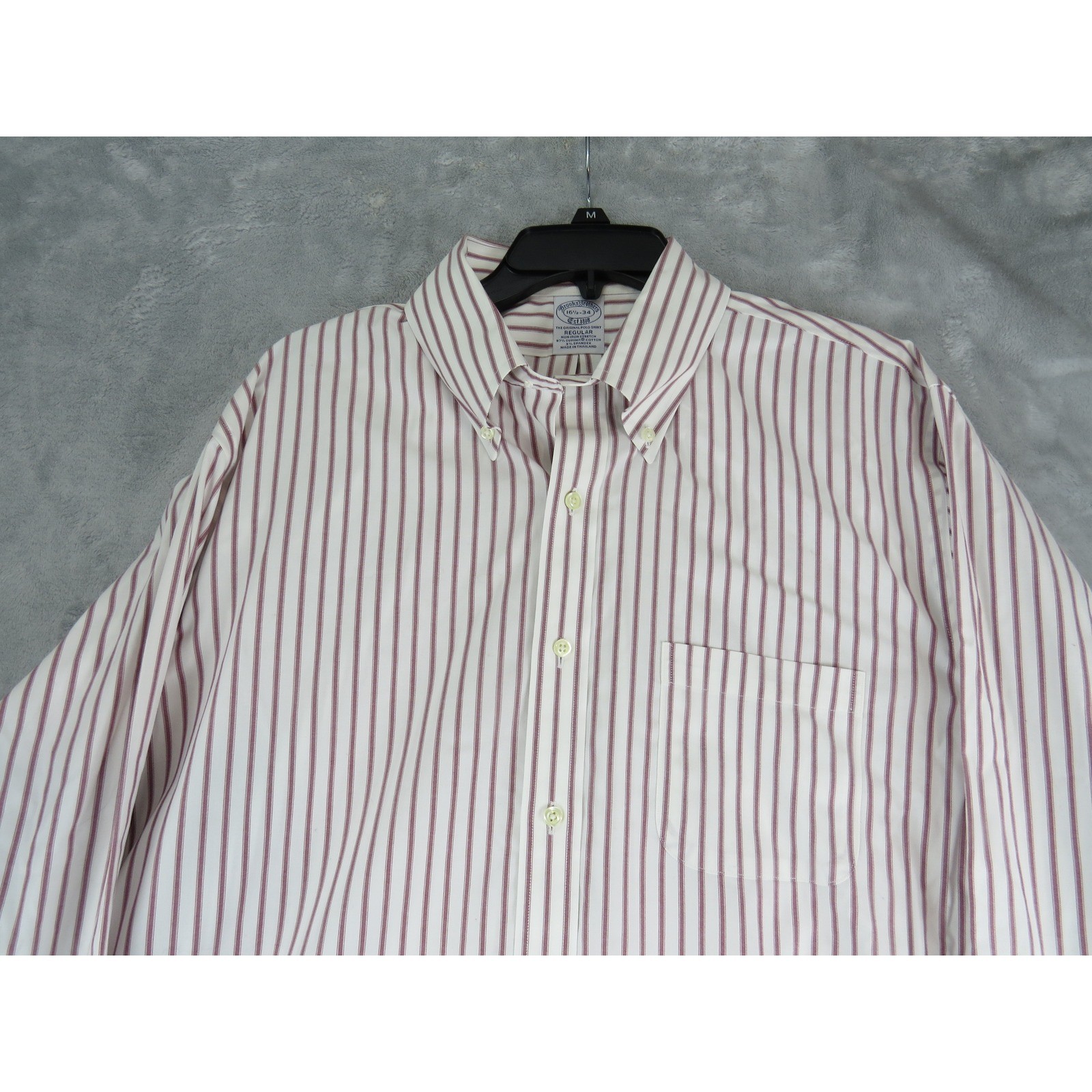 как выглядит Brooks Brothers Mens Supima Cotton Button-Down Shirt 16.5 Stripe Red White фото
