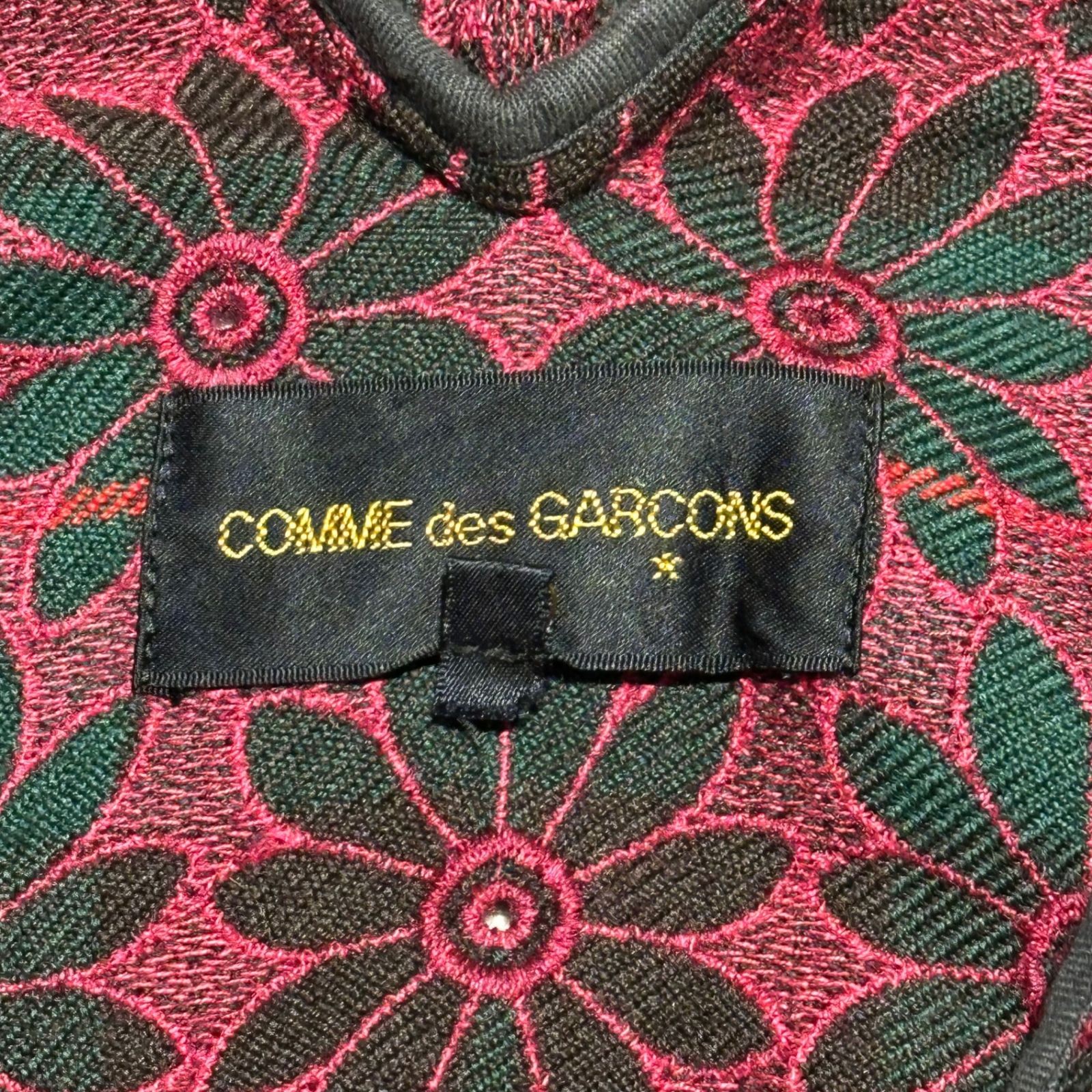 как выглядит Comme des Garcons 99AW Vintage Flower Stitchwork Buttonless Jacket Black-Red Us фото