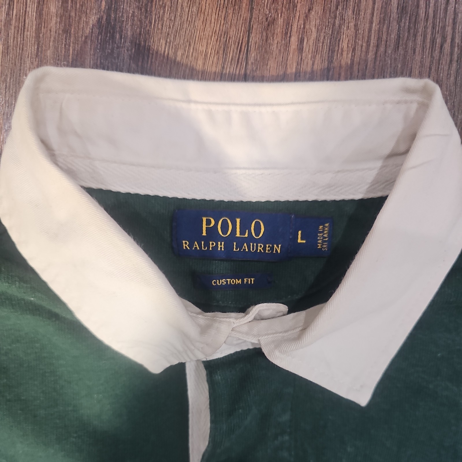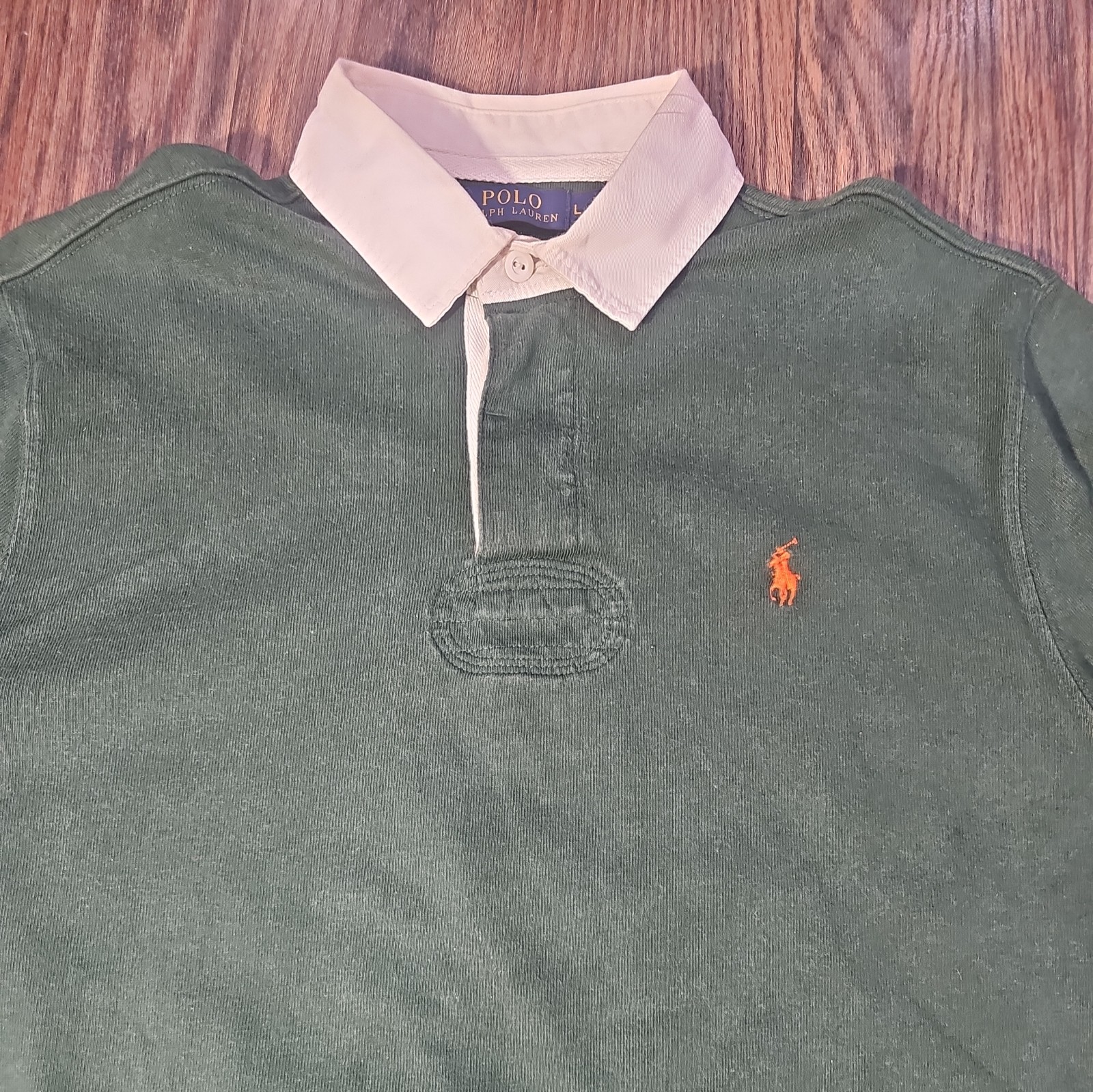 как выглядит Polo Ralph Lauren Rugby Shirt Mens Large Green Long Sleeve Orange Pony Collar фото