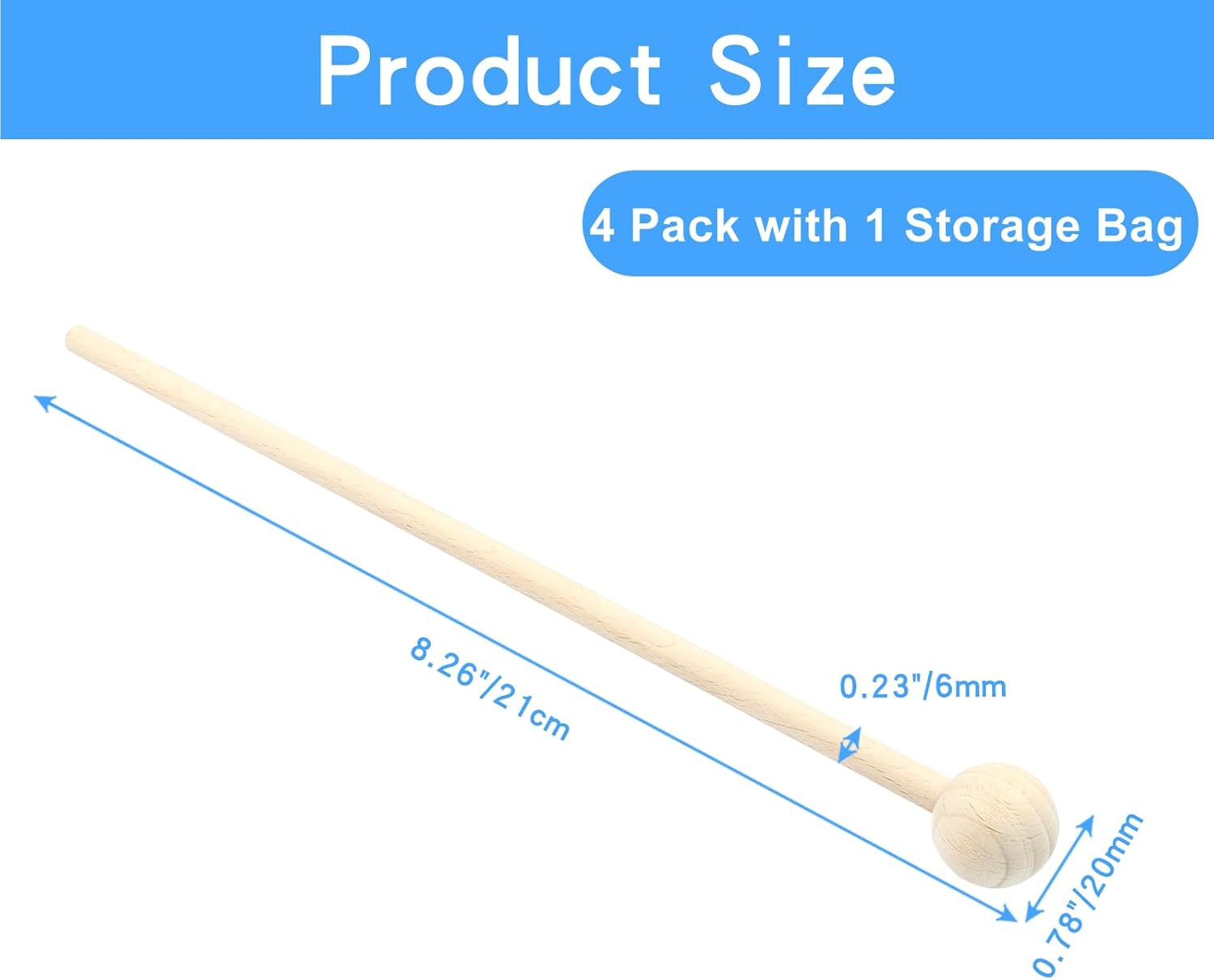4 Pcs Wood Xylophone Mallets, Glockenspiel Mallets Bell Mallets Percussion, 8 In